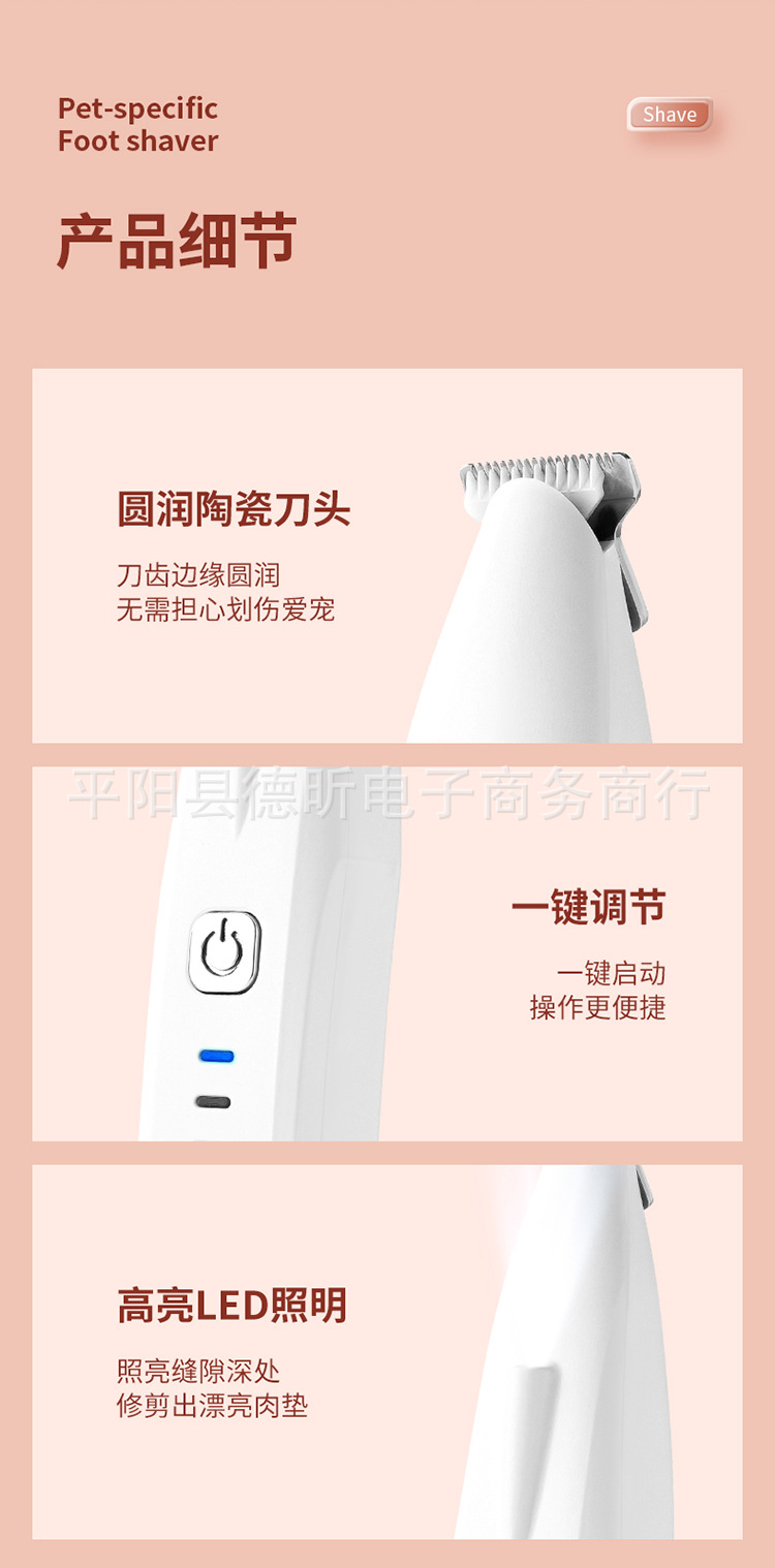 새로운 전기 고양이와 개 발 헤어 장치 헤어 컨디셔너 애완 동물 전기 클리퍼 충전식 LED 라이트 와이드 머리 발 면도 장치스토어 가기