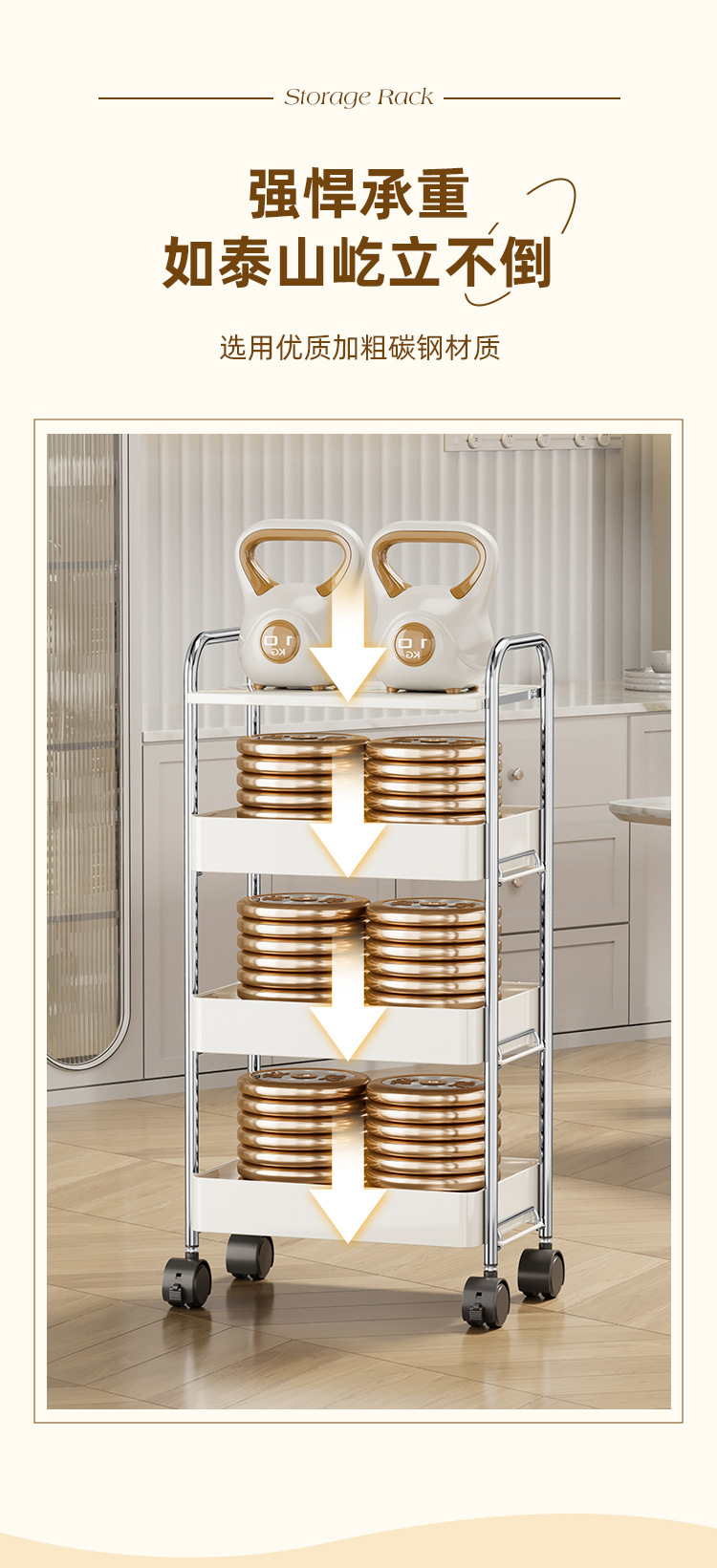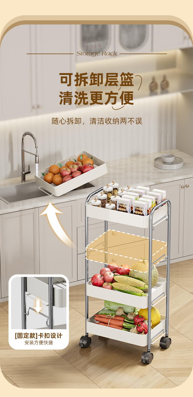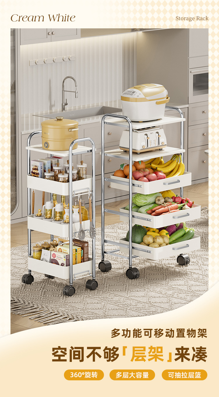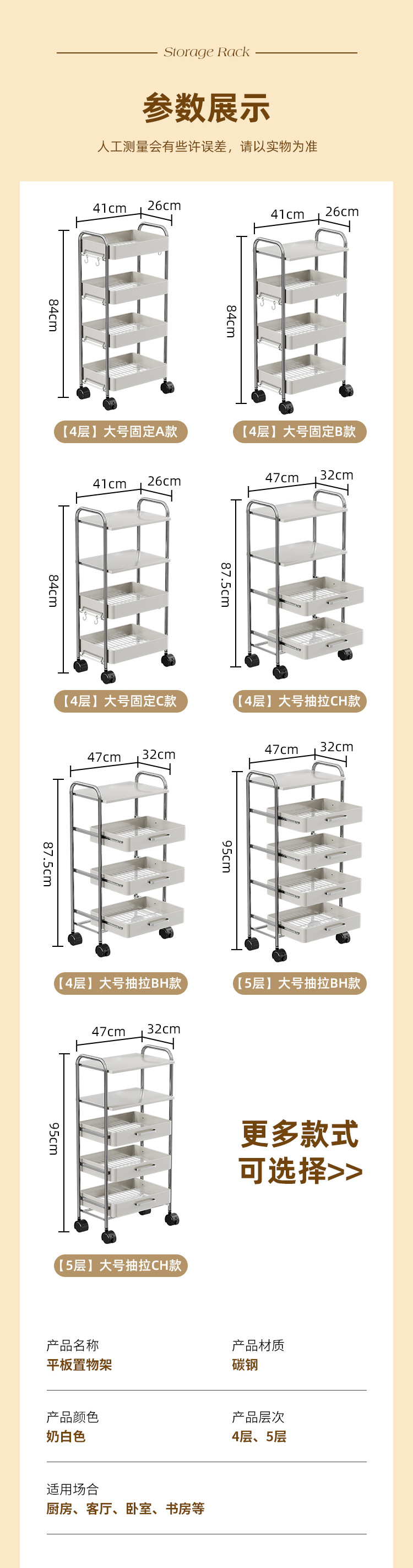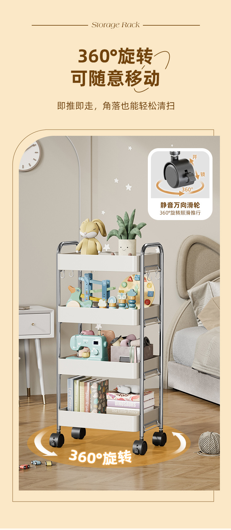 • 4단 평판 [트롤리 고정형 A형 실버+밀크화이트] 소형