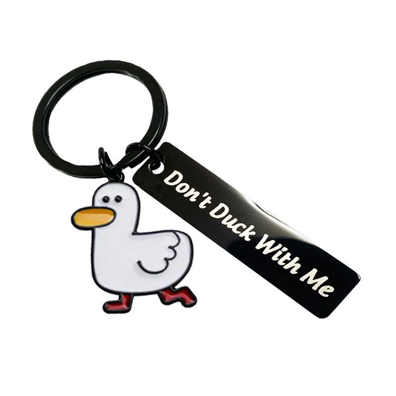 AliExpress 국경 간 뜨거운 판매 귀여운 애완 동물 오리 스테인레스 스틸 창조적 인 급유 오리 키 체인 학생 배낭 키 체인스토어 가기