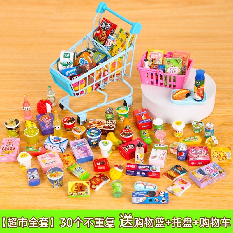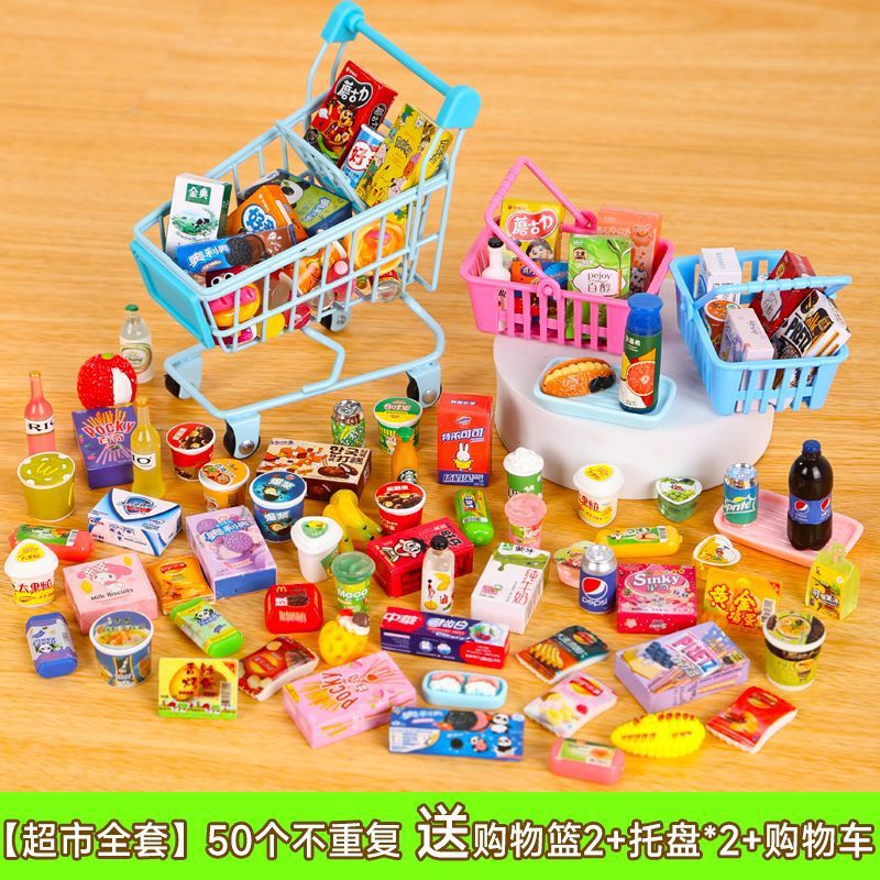 미니 시뮬레이션 작은 슈퍼마켓 어린이 놀이 장난감 작은 항목 gizmos 미니 음식 놀이 작은 가게 블라인드 박스스토어 가기