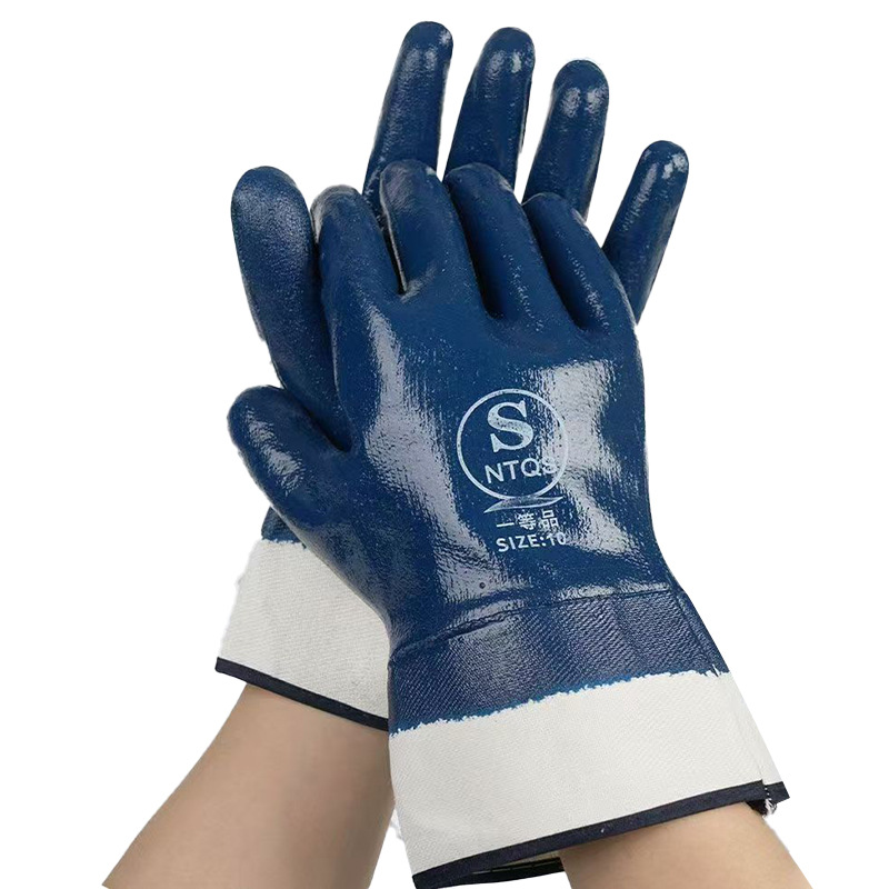 블루 와이드 오픈 장갑, 기름 방지, 내마모성, 방수, 석유 산업용, 두꺼운, 기계 수리 산업용, 부식 방지 작업용, 안전 장갑