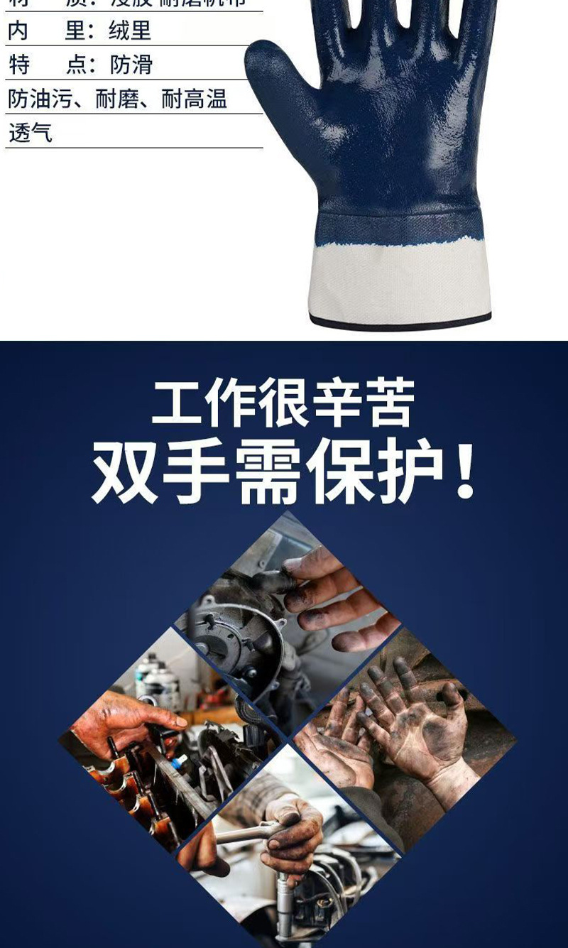 블루 와이드 오픈 장갑, 기름 방지, 내마모성, 방수, 석유 산업용, 두꺼운, 기계 수리 산업용, 부식 방지 작업용, 안전 장갑스토어 가기