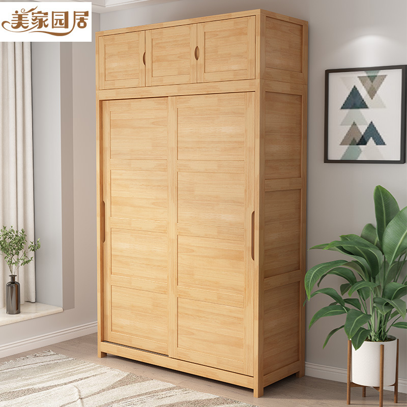 북유럽 솔리드 우드 슬라이딩 도어 옷장 현대 간단한 로그 스타일 침실 슬라이딩 도어 플러스 탑 캐비닛 대형 옷장 슬라이딩 도어 캐비닛스토어 가기