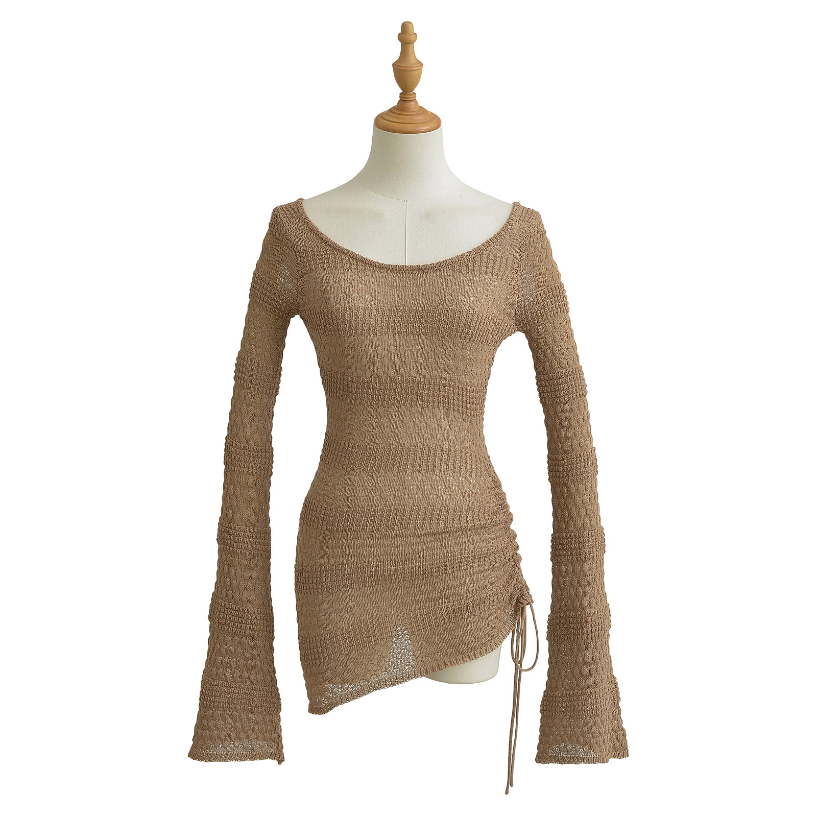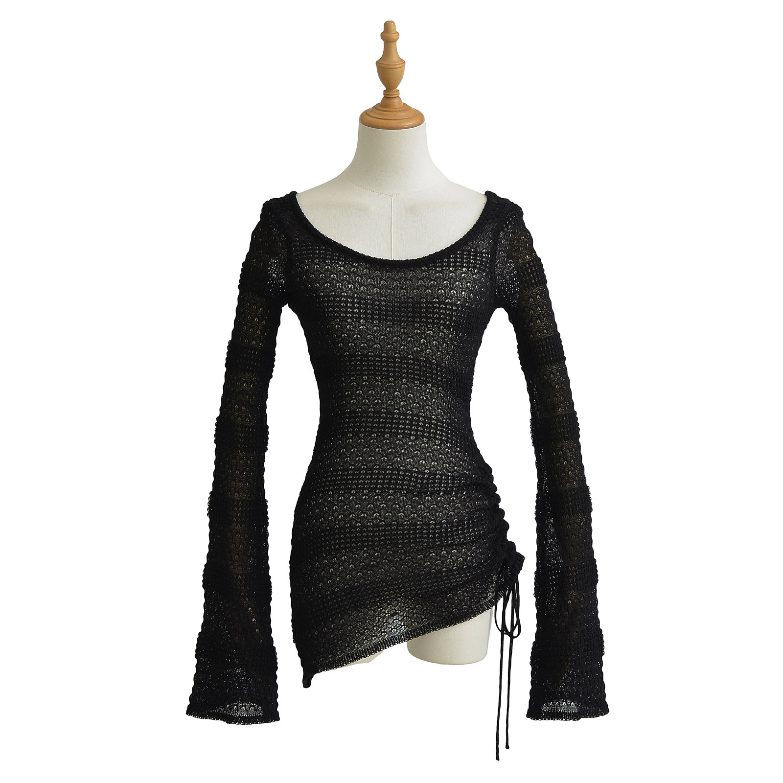 미국 스타일 뜨거운 소녀 뿔 슬리브 빈 블라우스 여성용 2024 가을 순수한 욕망 스타일 게으른 올 매치 타이트 허리 탑