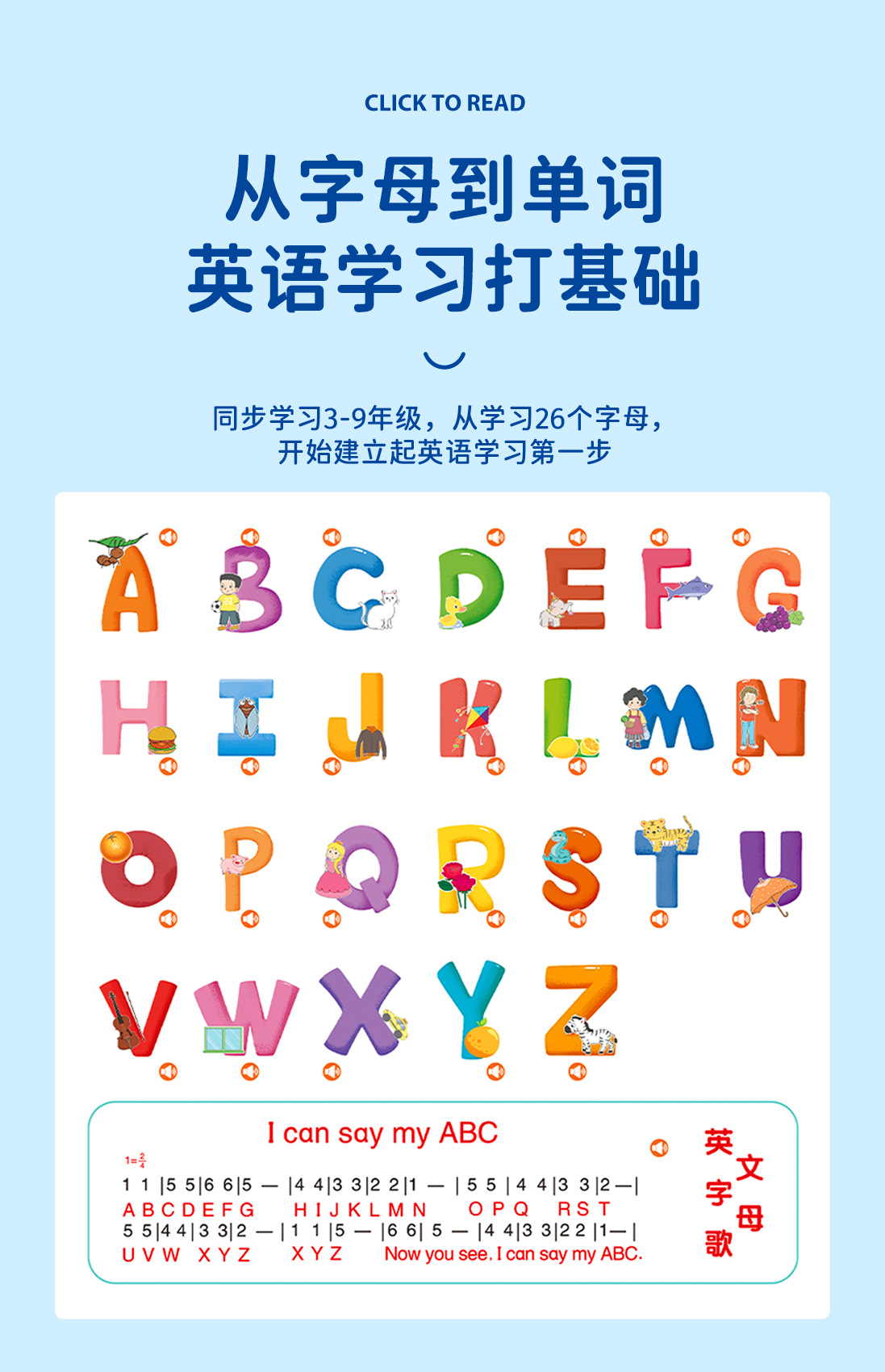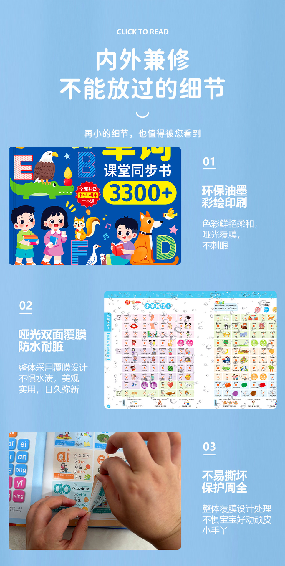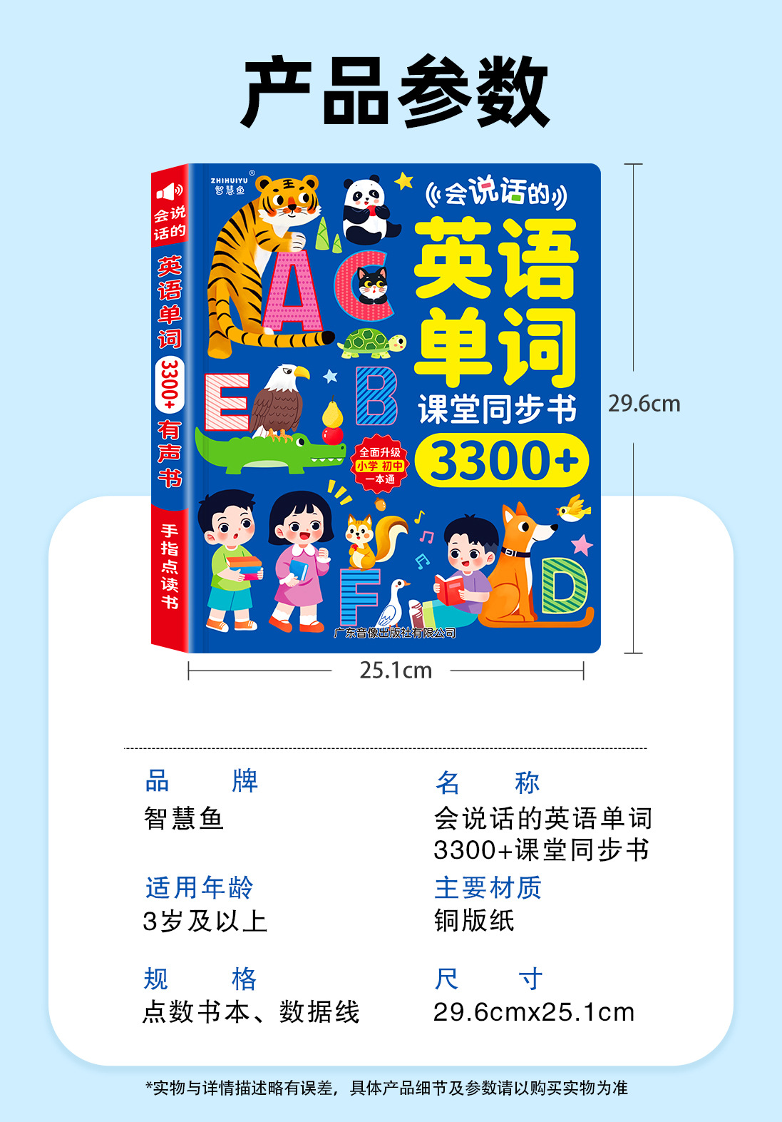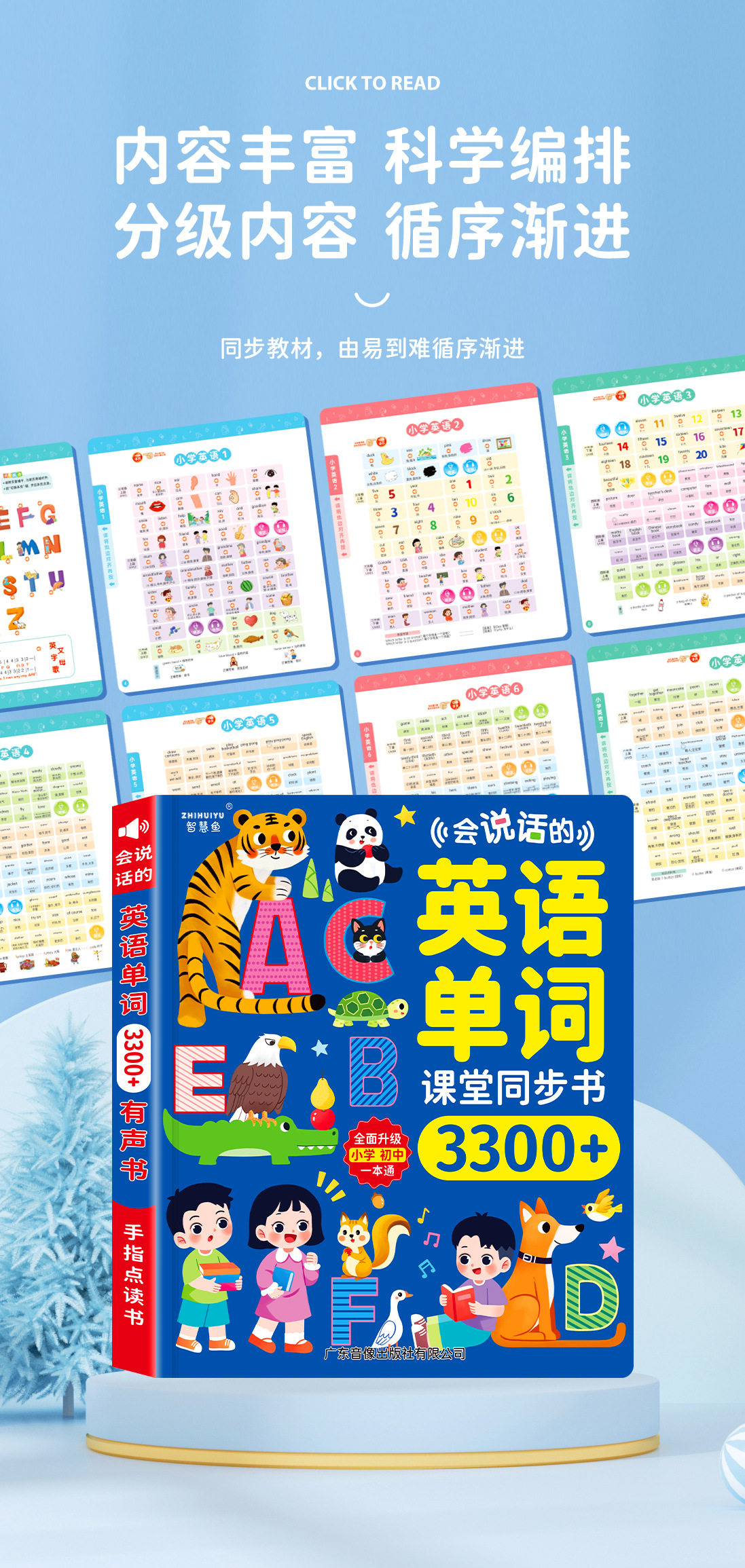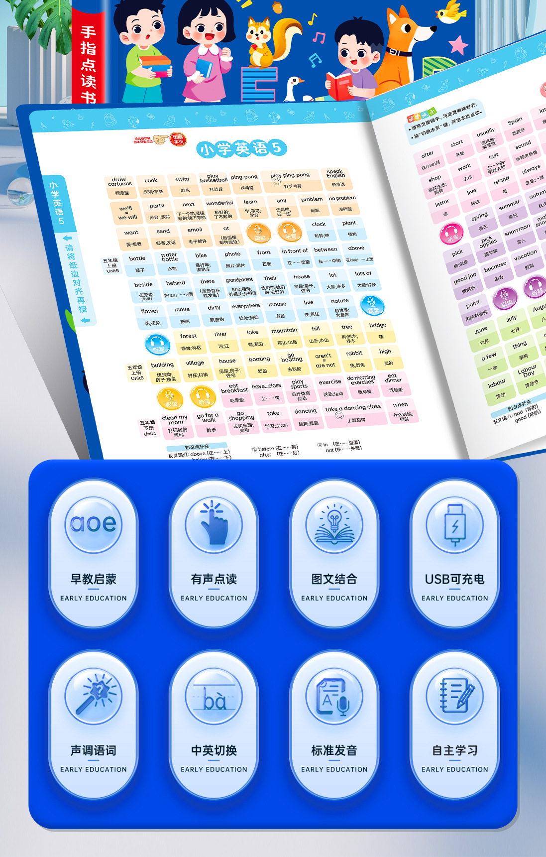 새로운 3-9 동기화 된 영어 단어 원터치 받아쓰기 손가락 포인트 읽기 3300 단어 및 국제 음성 알파벳 오디오 북