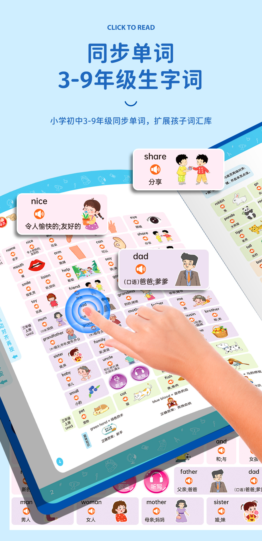 새로운 3-9 동기화 된 영어 단어 원터치 받아쓰기 손가락 포인트 읽기 3300 단어 및 국제 음성 알파벳 오디오 북스토어 가기