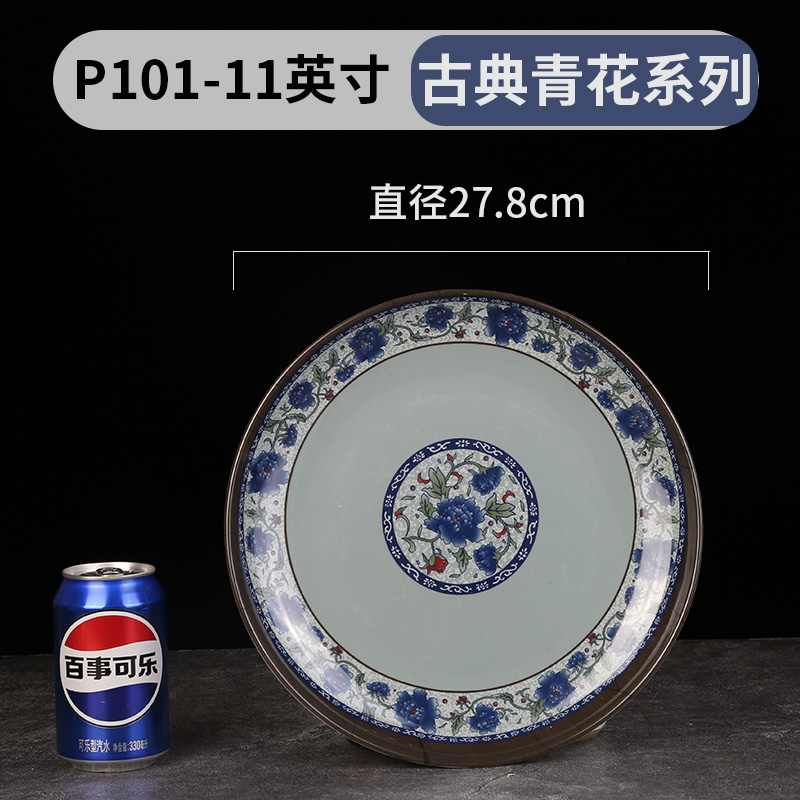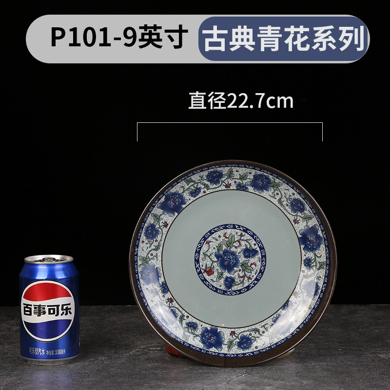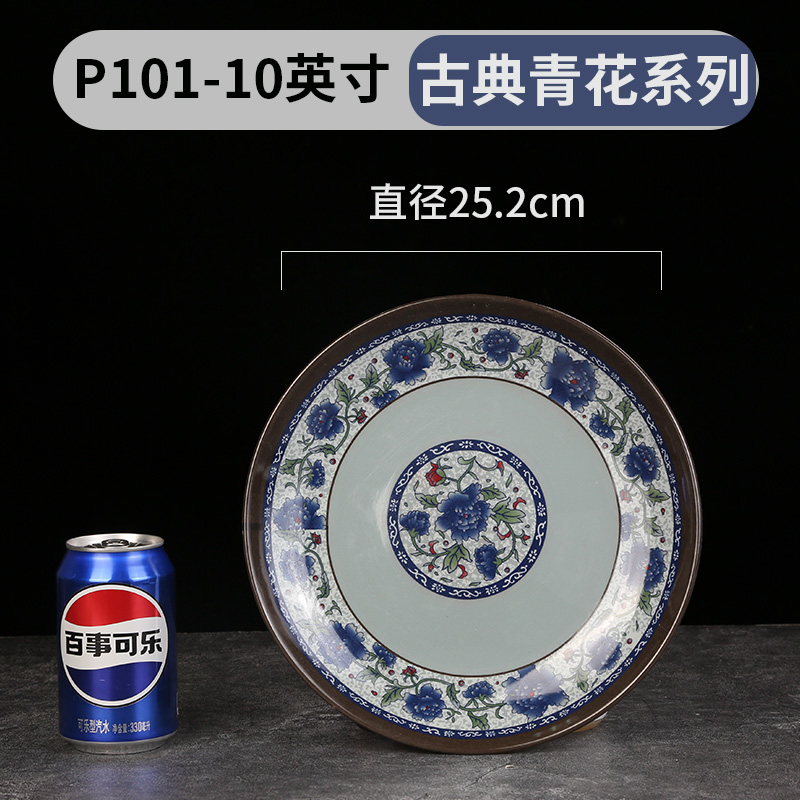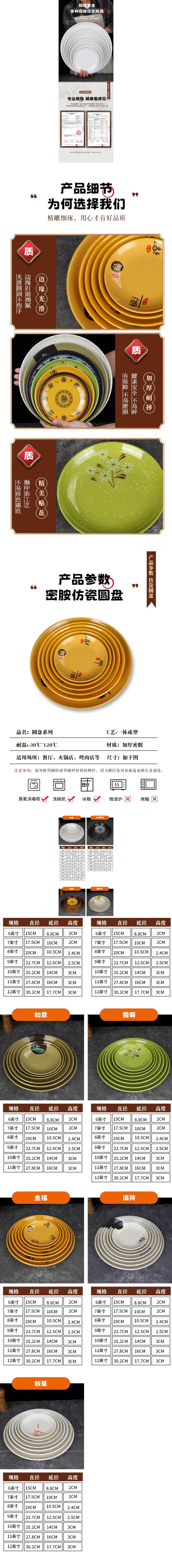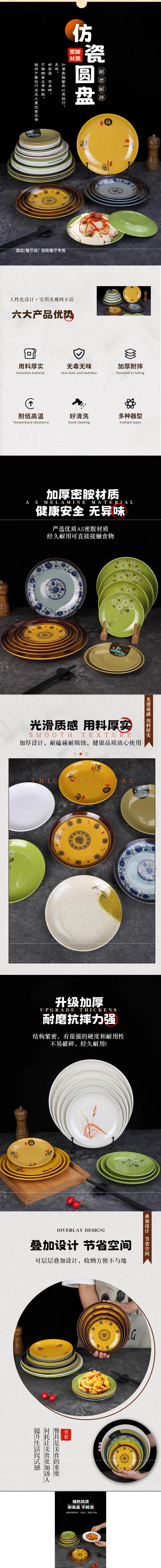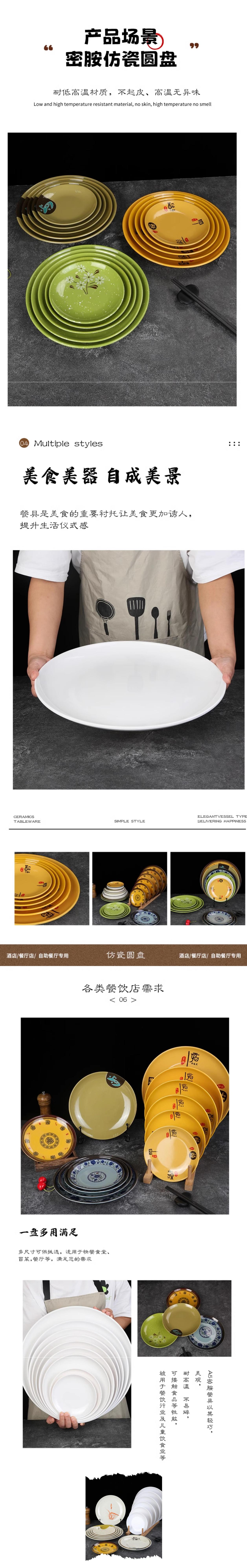 멜라민 플레이트 상업 라운드 플라스틱 디스크 접시 요리 레스토랑 케이터링 뷔페 플레이트 특별 모조 도자기 플레이트스토어 가기