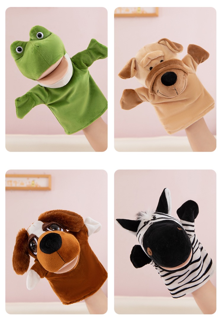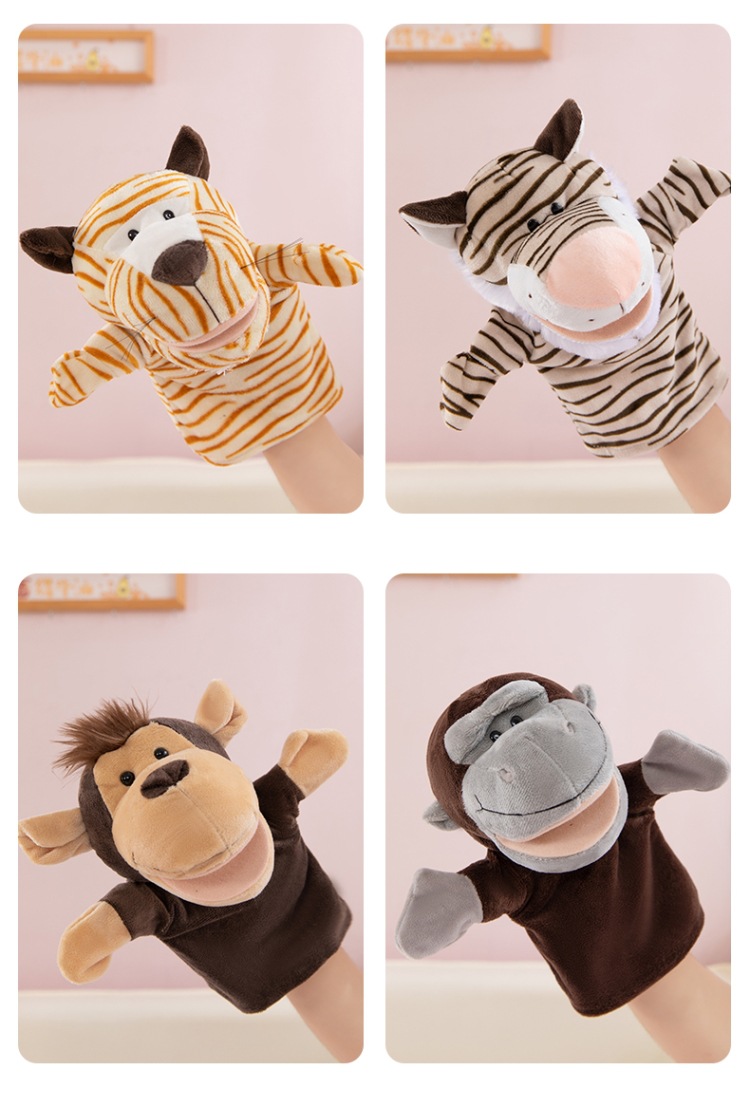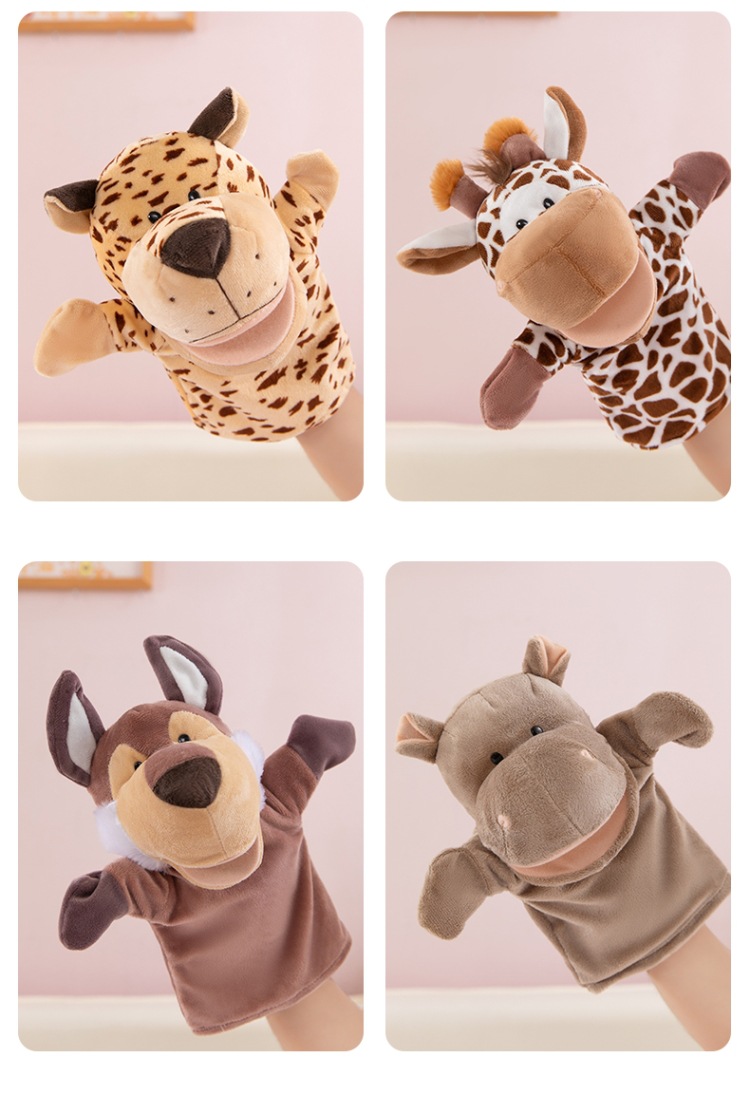 손 인형 장난감 동물 세트 손 위로 인형 공연용 사자 입을 여는 동물 인형 유치원 강의 소품