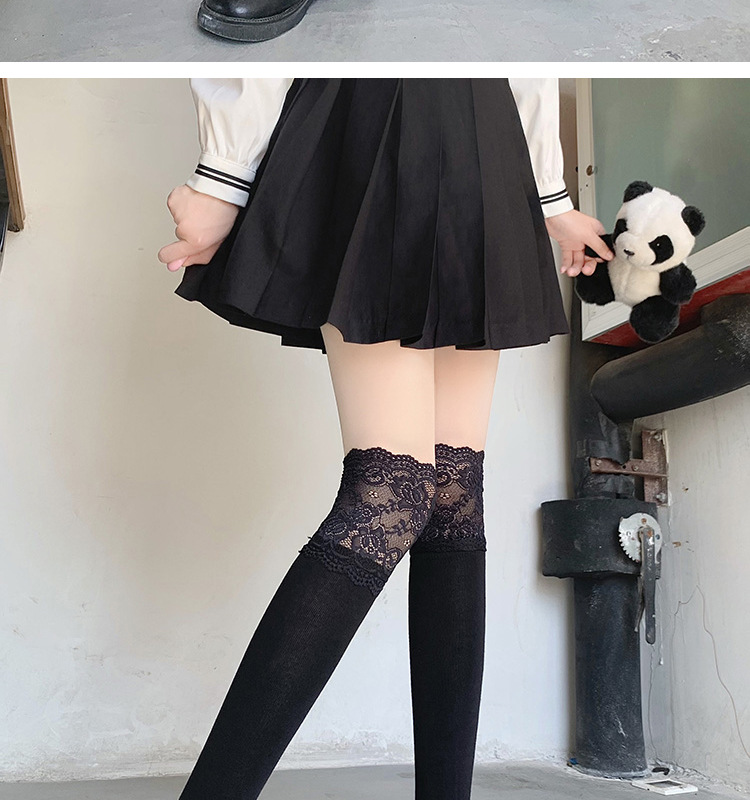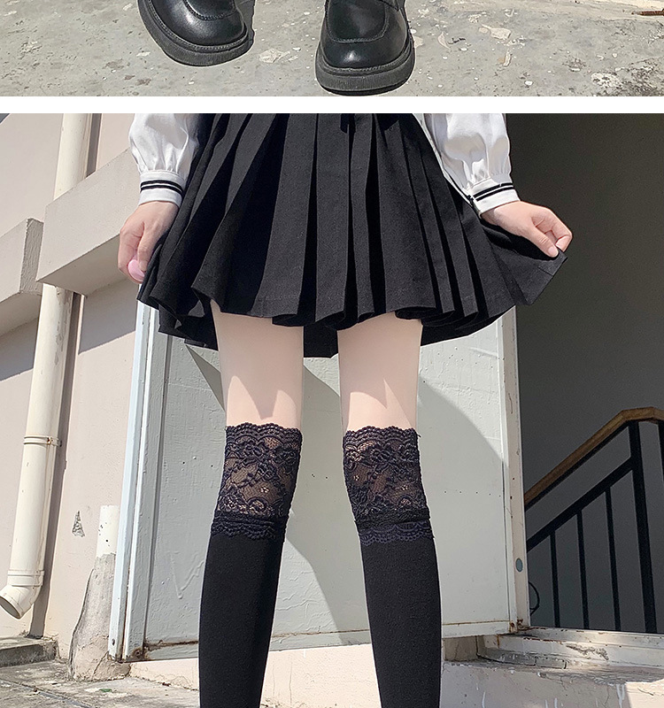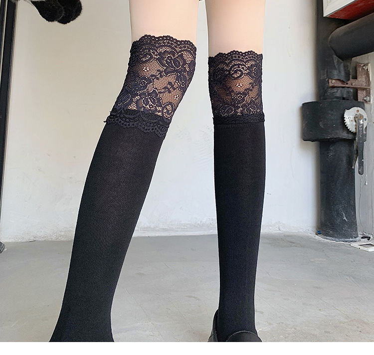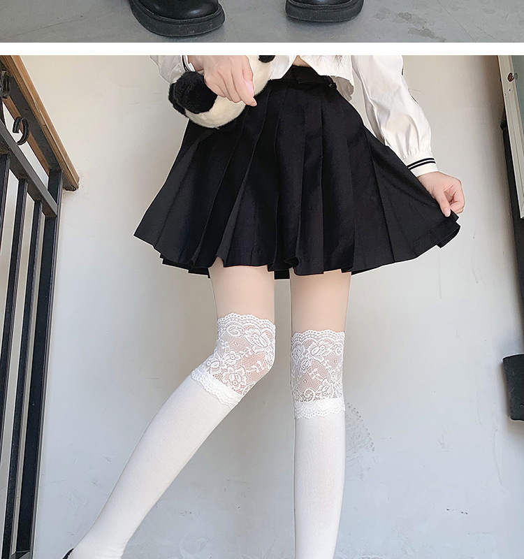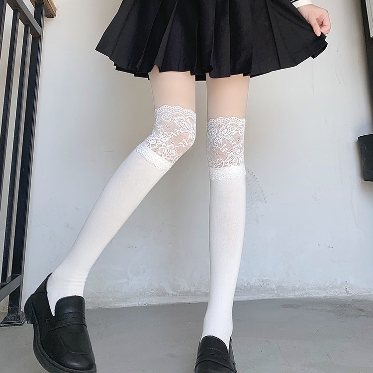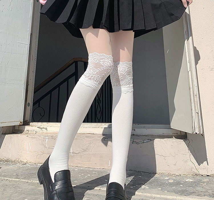 화이트 레이스 트림 송아지 양말 여성용 로리타 중형 롱 오버 더 무릎 양말, 높은 부츠 달콤한 허벅지 스택 양말스토어 가기