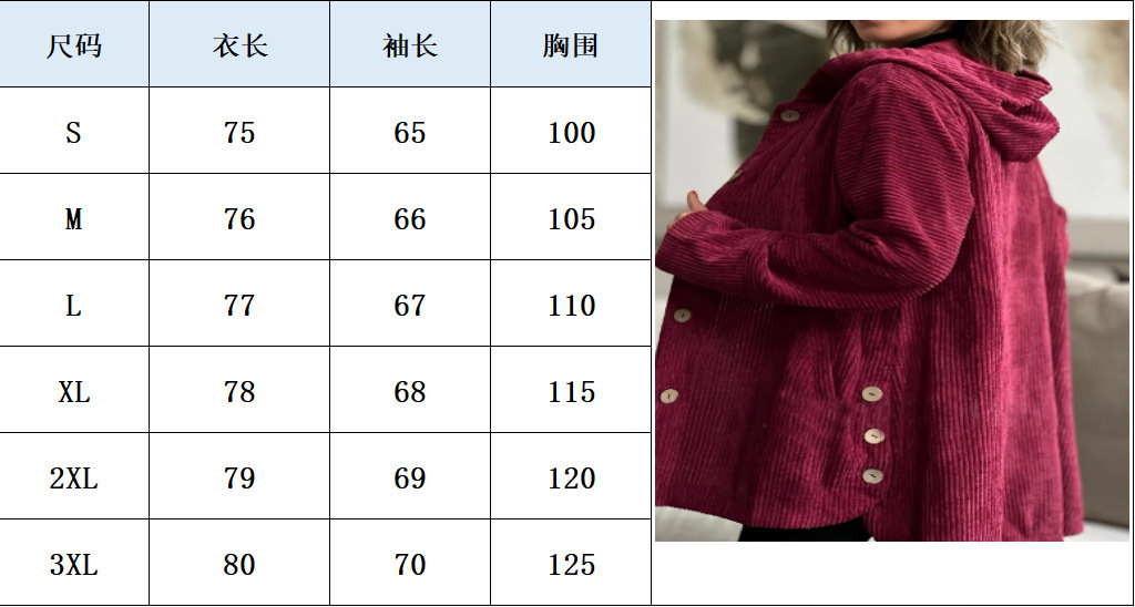 2024 국경을 넘는 유럽과 미국의 대외 무역 여성의 가을과 겨울 새로운 아마존 후드 루즈 여성 코듀로이 캐주얼 자켓스토어 가기