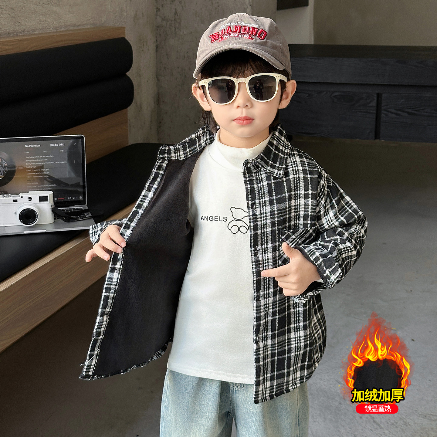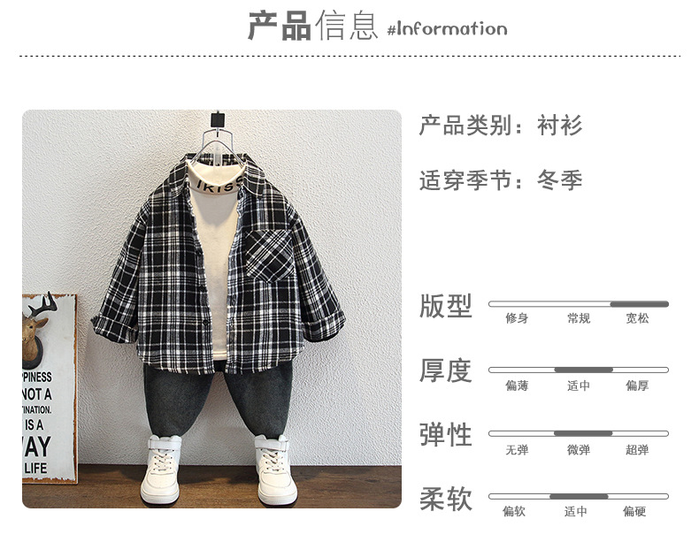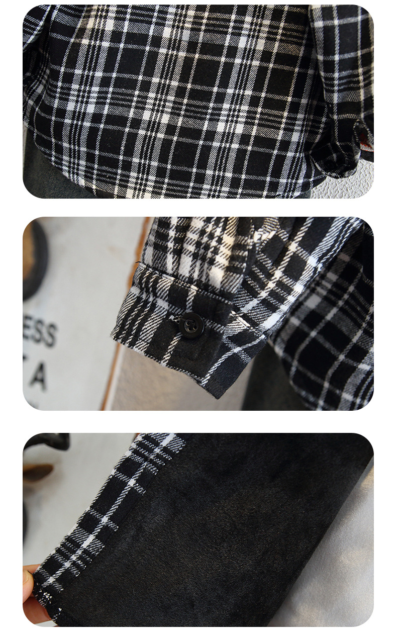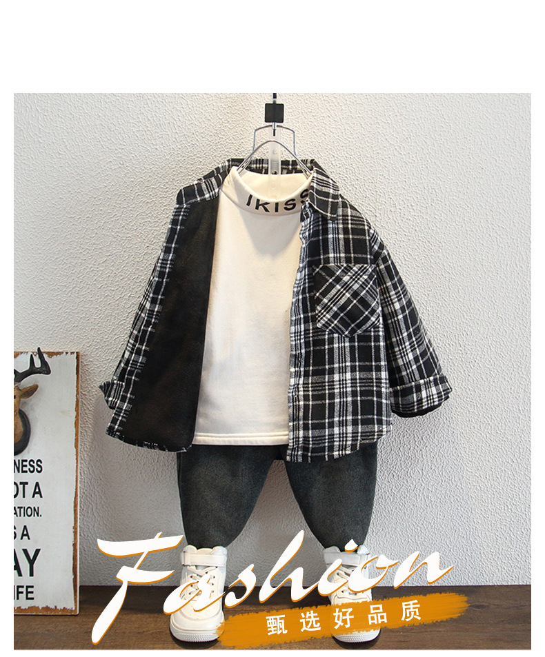 아동복 소년의 세련된 격자 무늬 기모 코튼 셔츠 가을과 겨울 어린이 캐주얼 유행 두꺼운 재킷스토어 가기