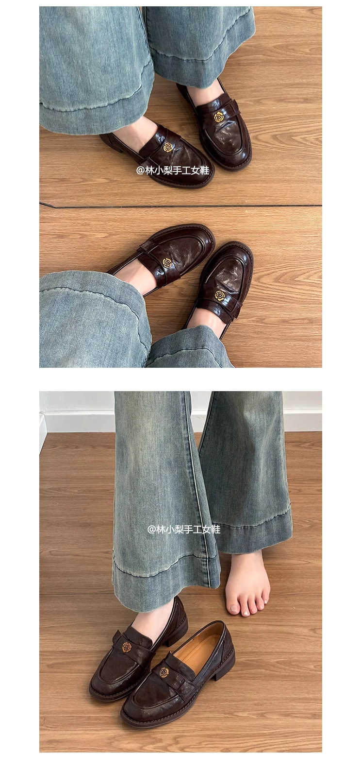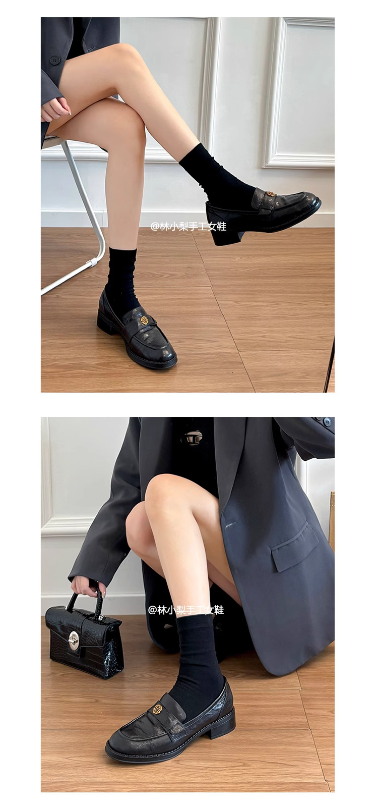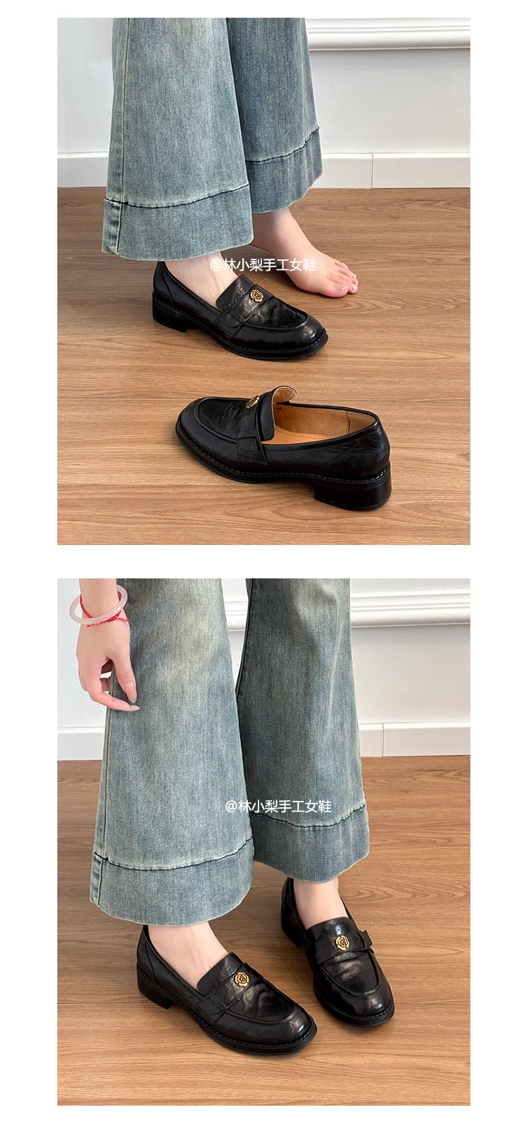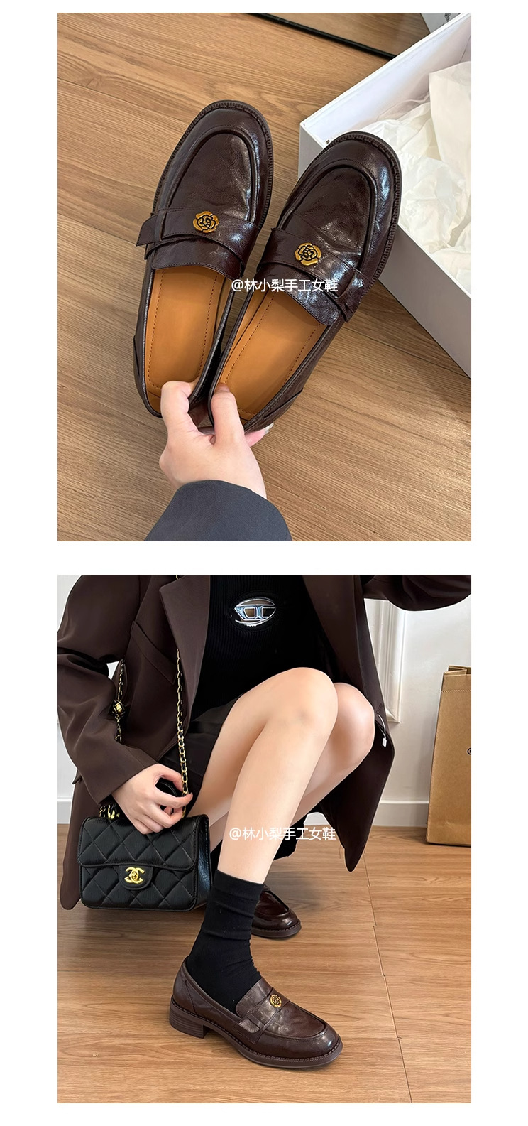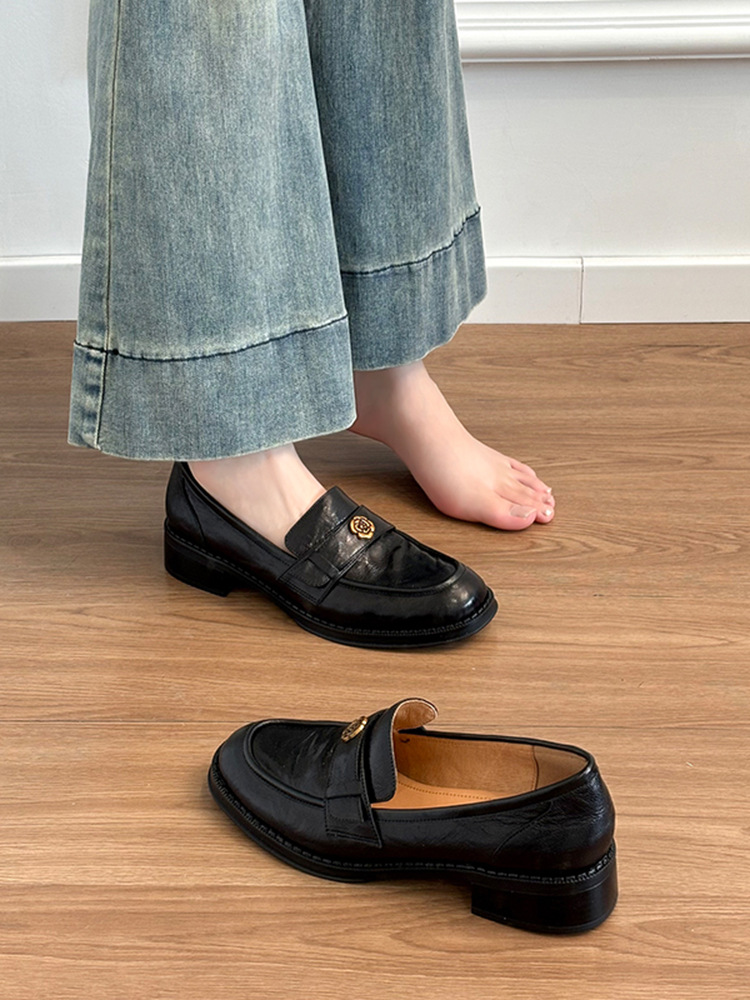 양가죽 버전 ~ 정품 가죽 새로운 두꺼운 밑창 동백 페달 로퍼 여성 영국 스타일의 복고풍 작은 가죽 신발 단층 신발스토어 가기