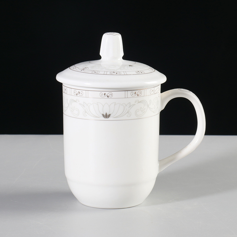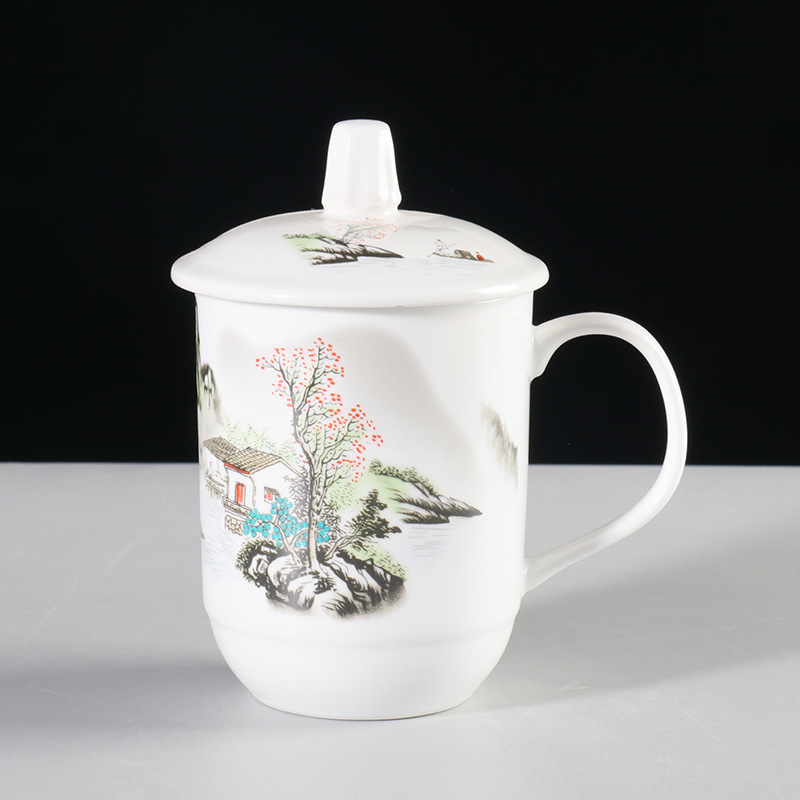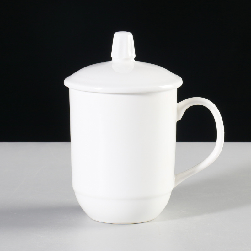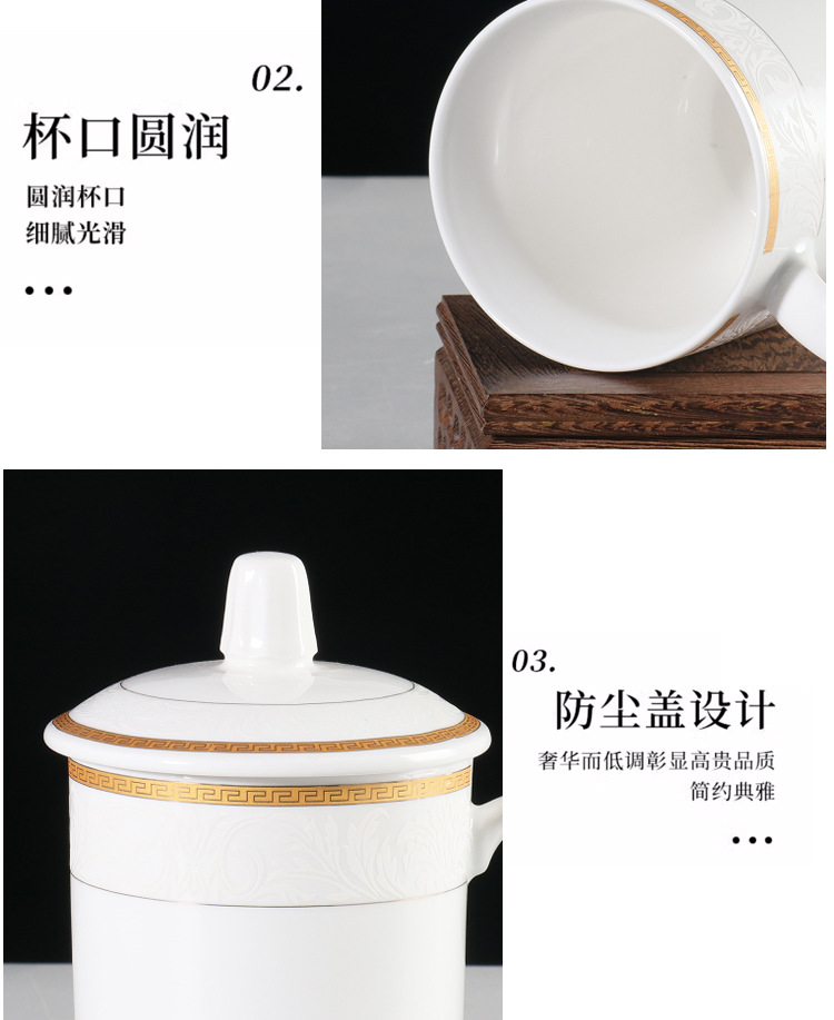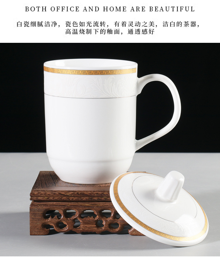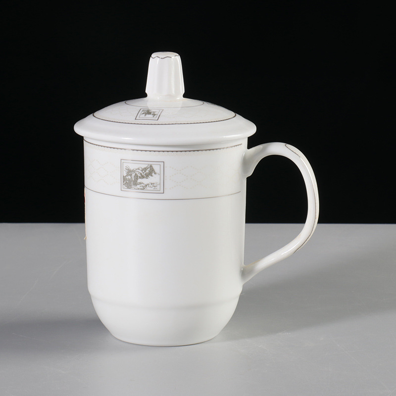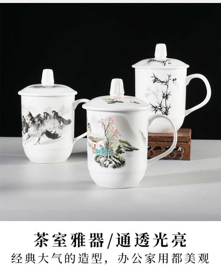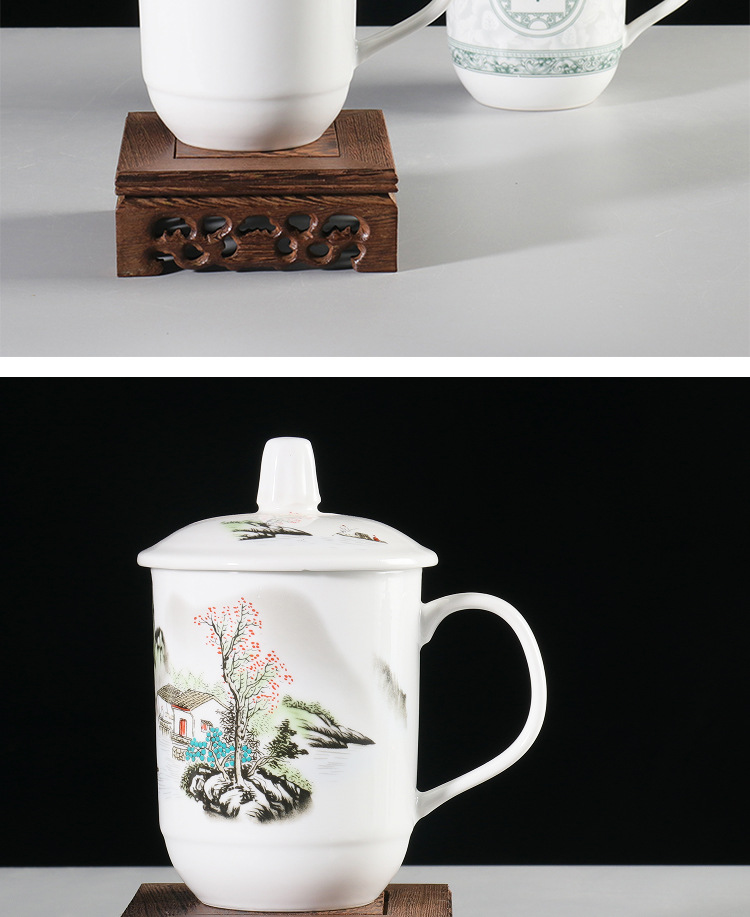 Jingdezhen 세라믹 컵 회의실 사무실 워터 컵 호텔 티 컵 뚜껑 가정용 세트 워터 컵 조각