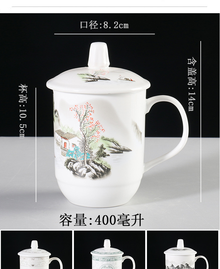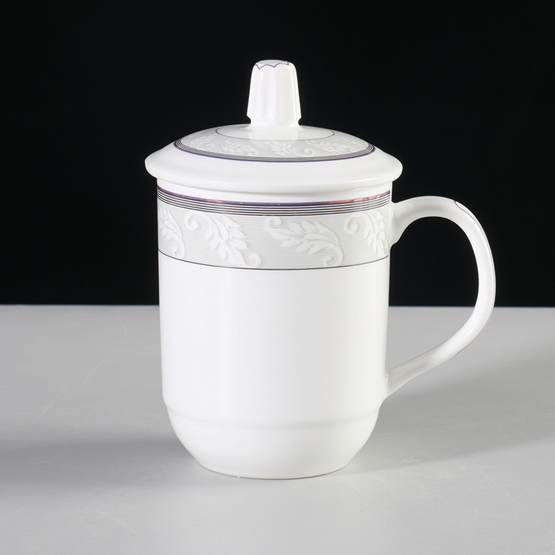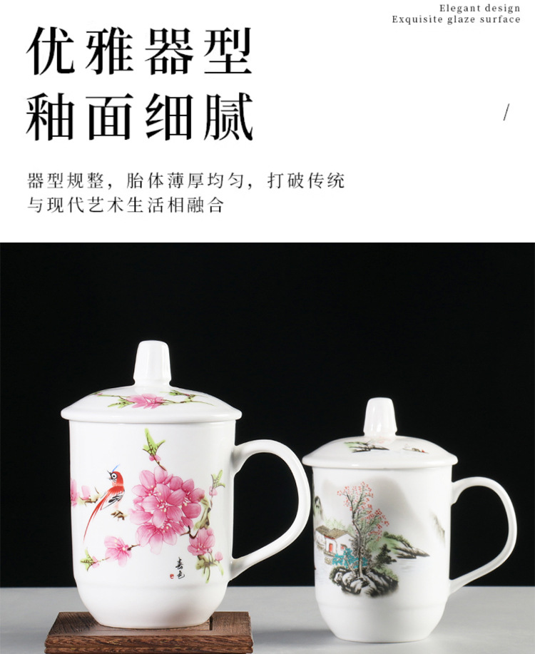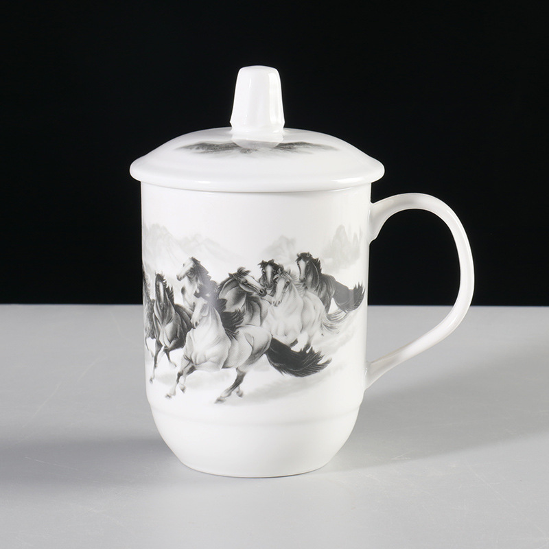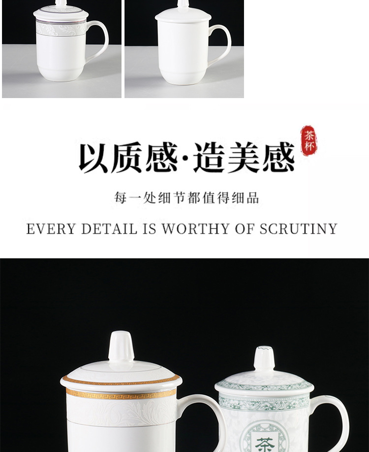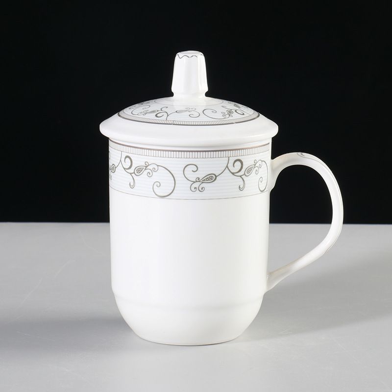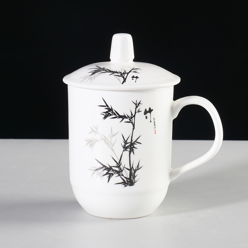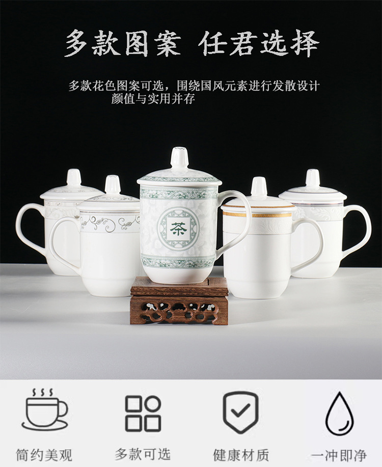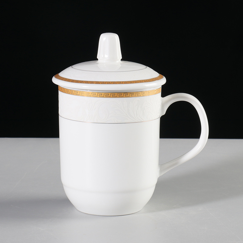 Jingdezhen 세라믹 컵 회의실 사무실 워터 컵 호텔 티 컵 뚜껑 가정용 세트 워터 컵 조각