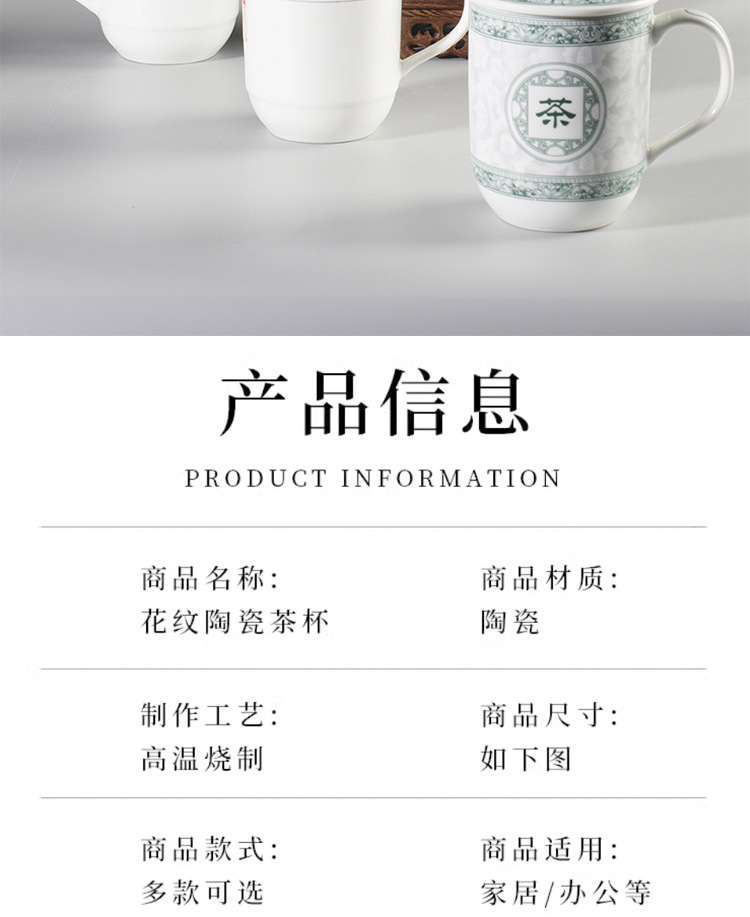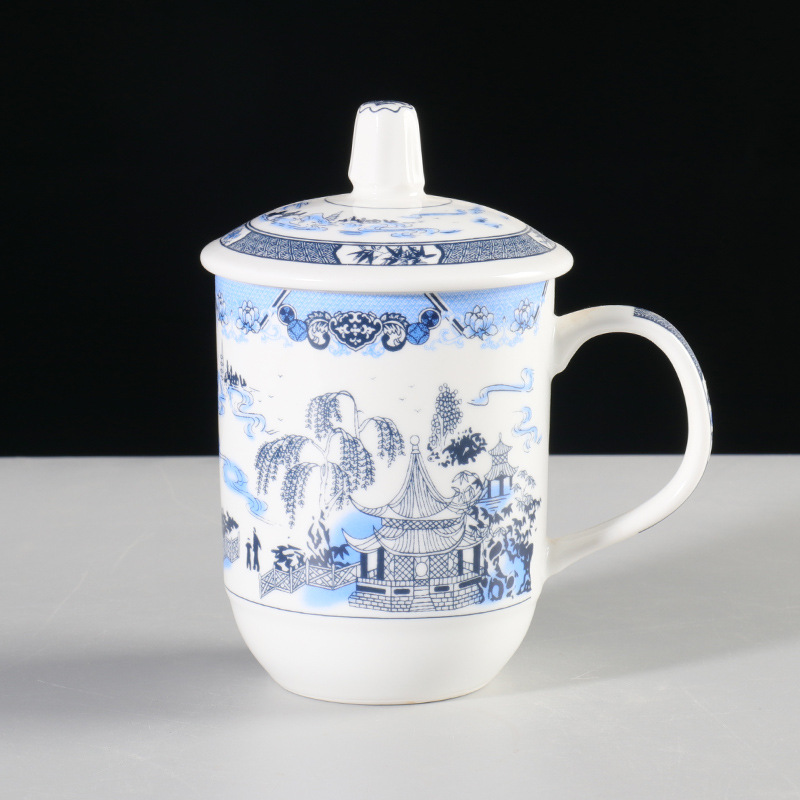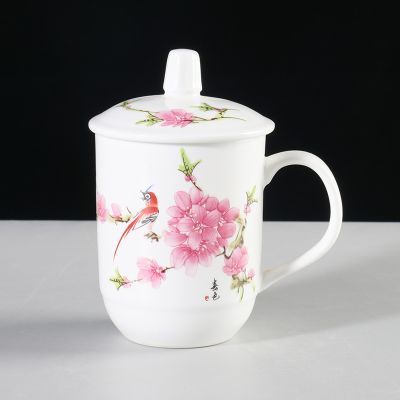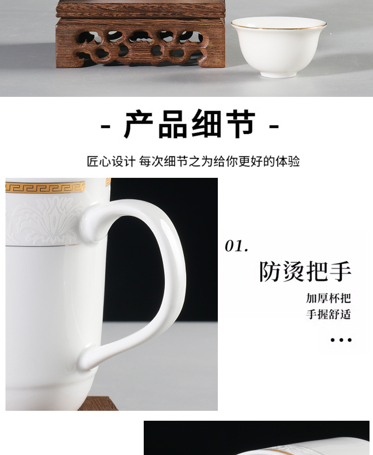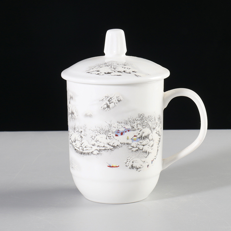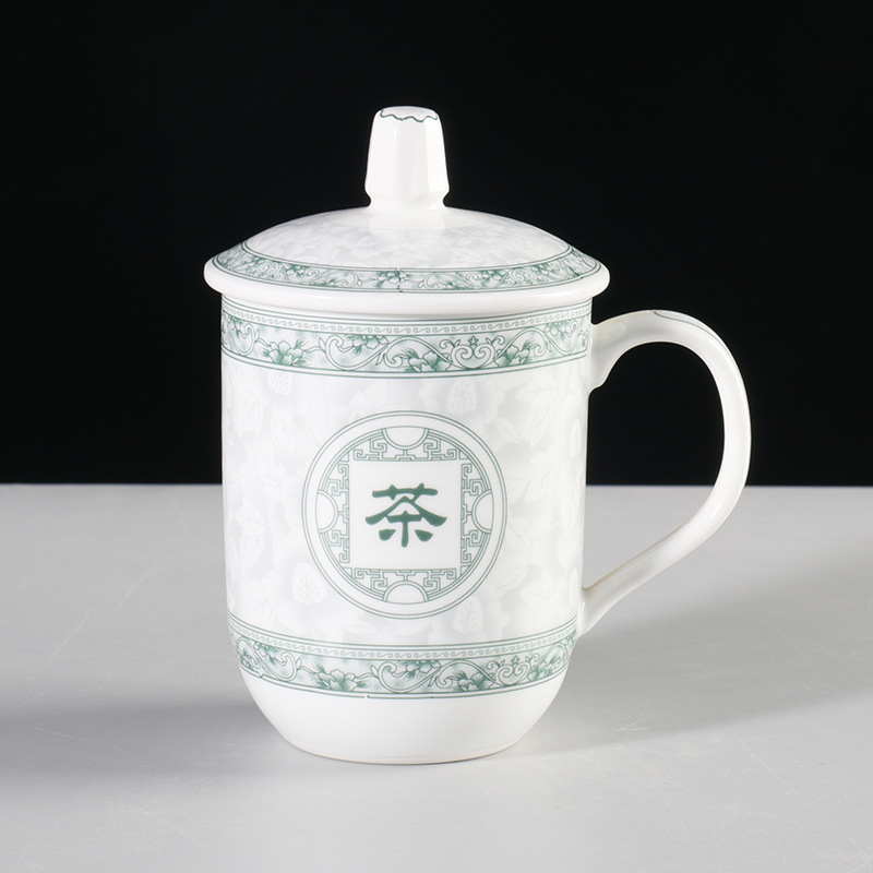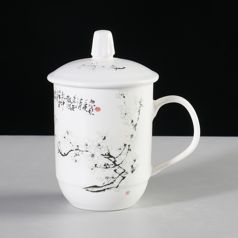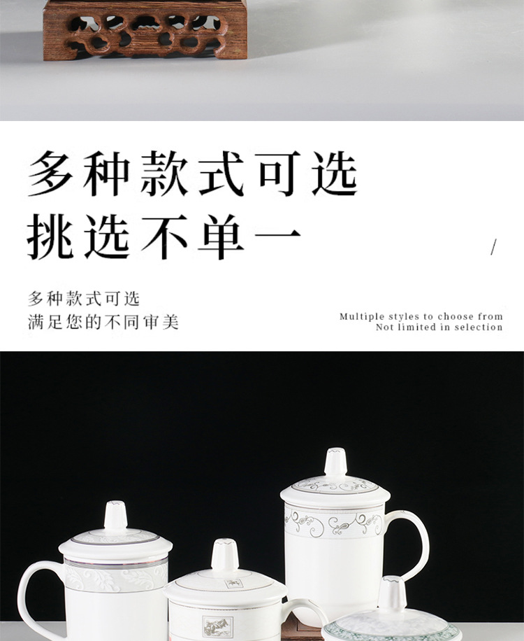 Jingdezhen 세라믹 컵 회의실 사무실 워터 컵 호텔 티 컵 뚜껑 가정용 세트 워터 컵 조각