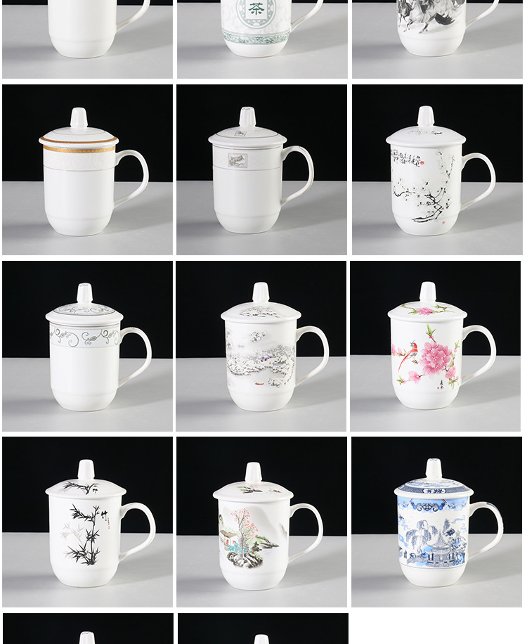 Jingdezhen 세라믹 컵 회의실 사무실 워터 컵 호텔 티 컵 뚜껑 가정용 세트 워터 컵 조각스토어 가기