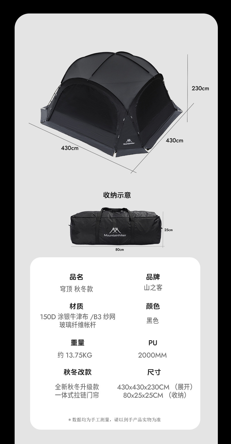 마운틴 게스트 Tuyue 야외 캠핑 돔 가을과 겨울 텐트 야외 레저 피크닉 라운드 큰 캐노피스토어 가기