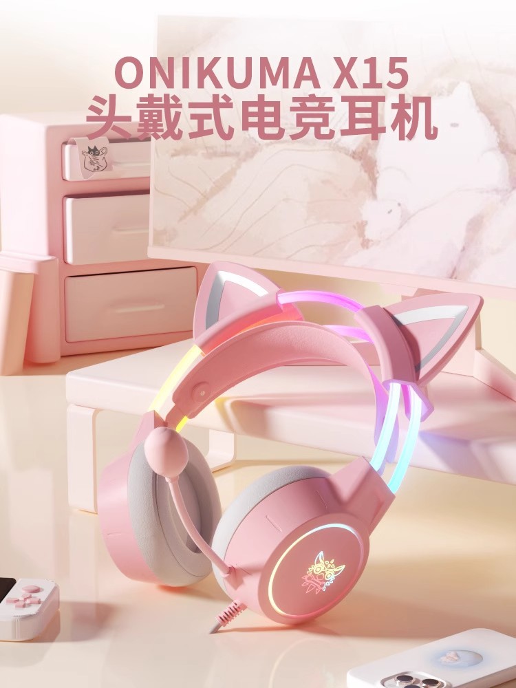 국경 2 차원 전자 스포츠 멋진 헤드폰 ONIKUMA 헤드셋 X15PRO 고양이 귀 소녀 유선 컴퓨터스토어 가기