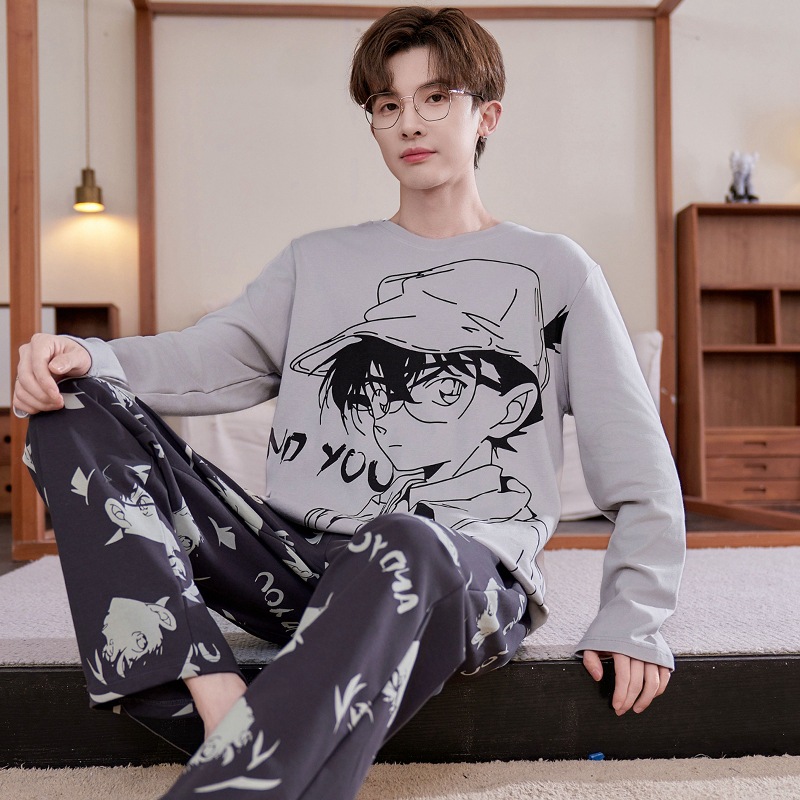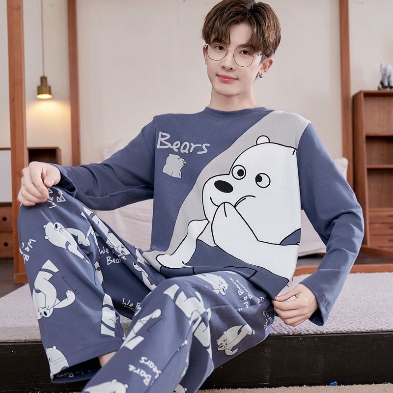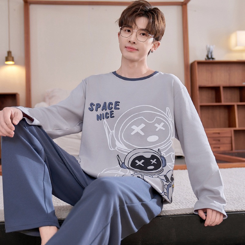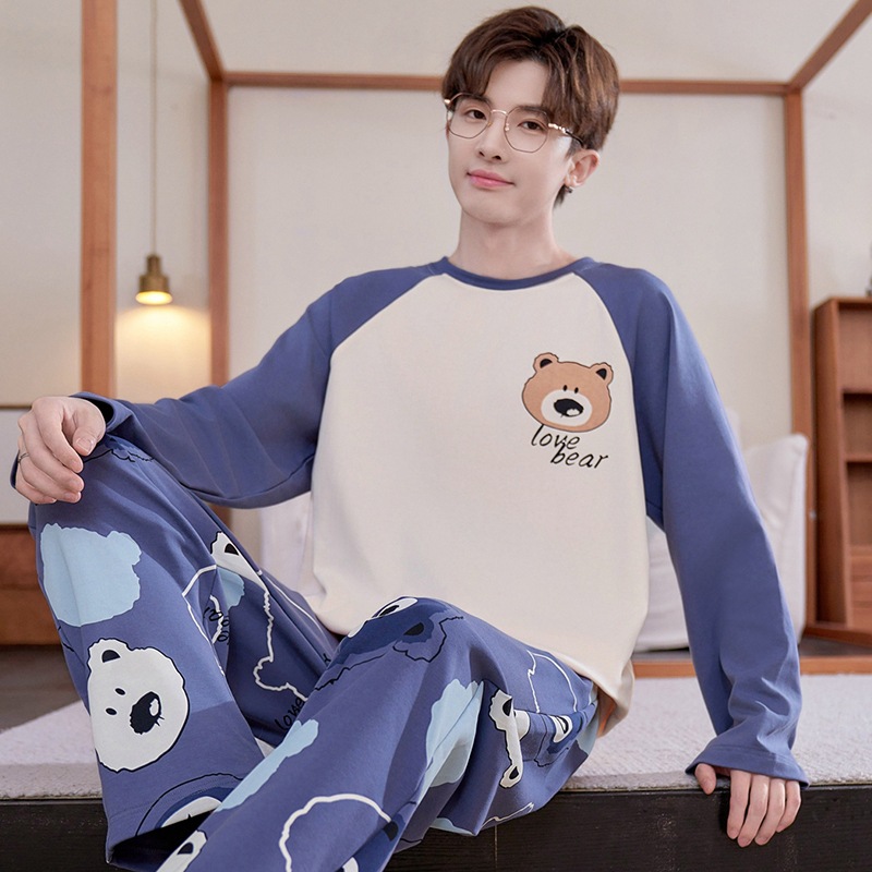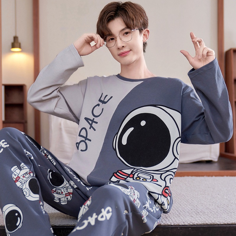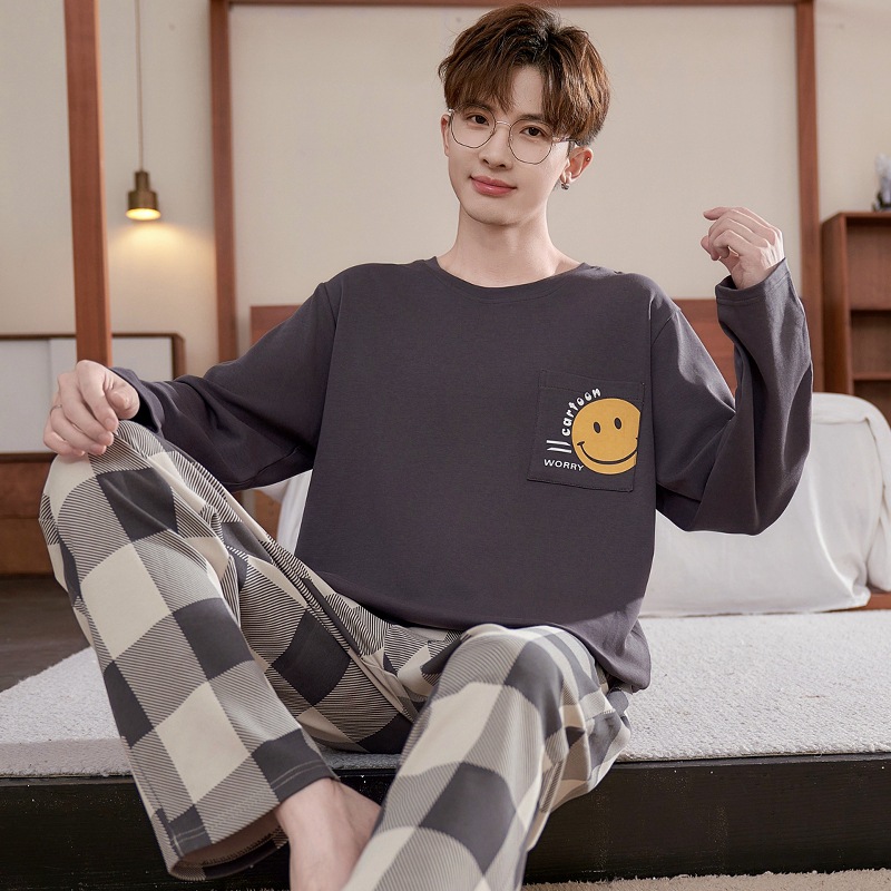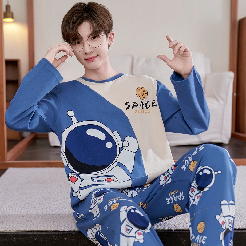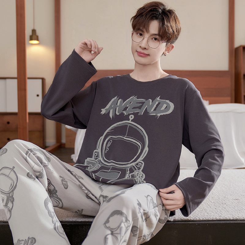 남자 잠옷 봄 가을면 긴 소매 남자 10 대 학생 큰 아이들 2024 새 집 옷 세트스토어 가기