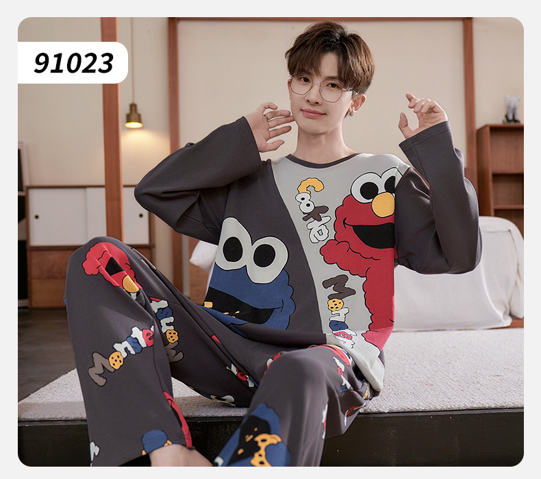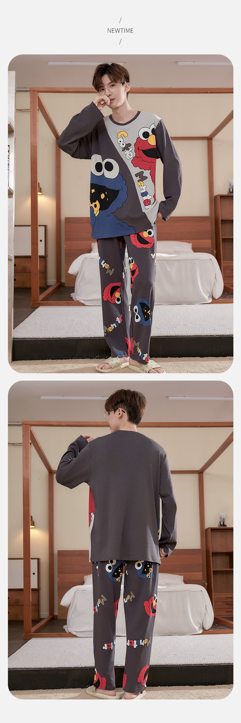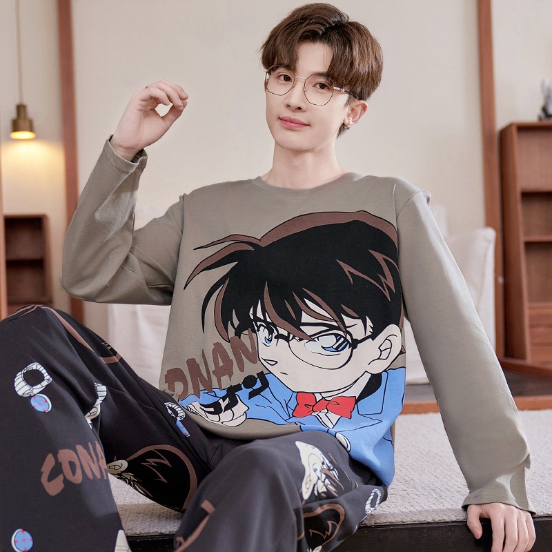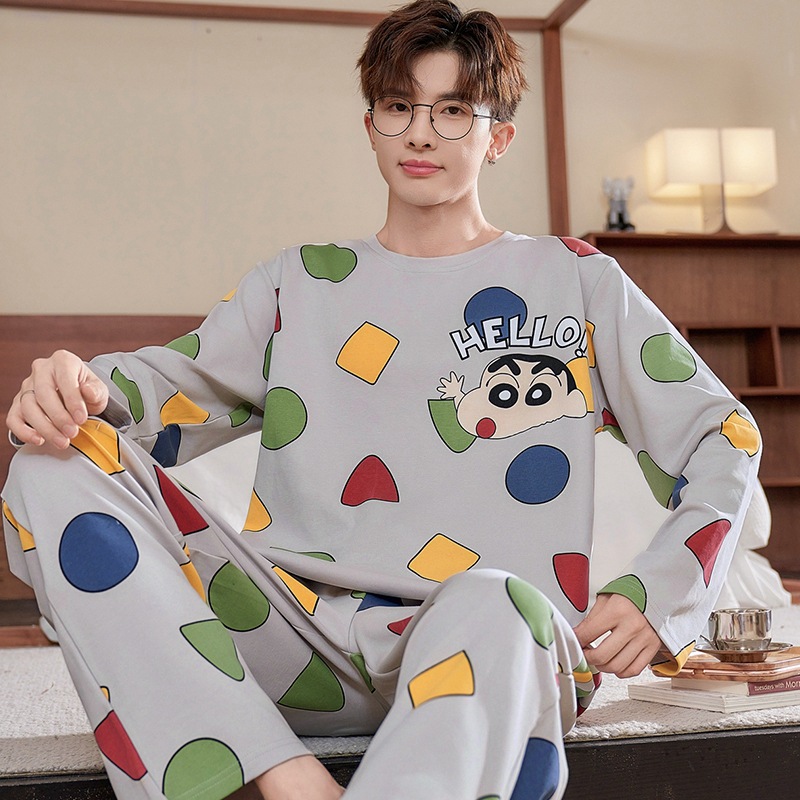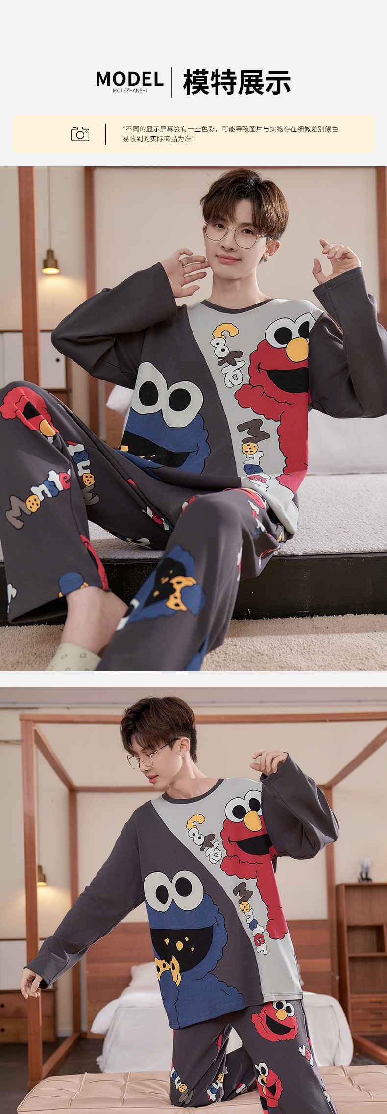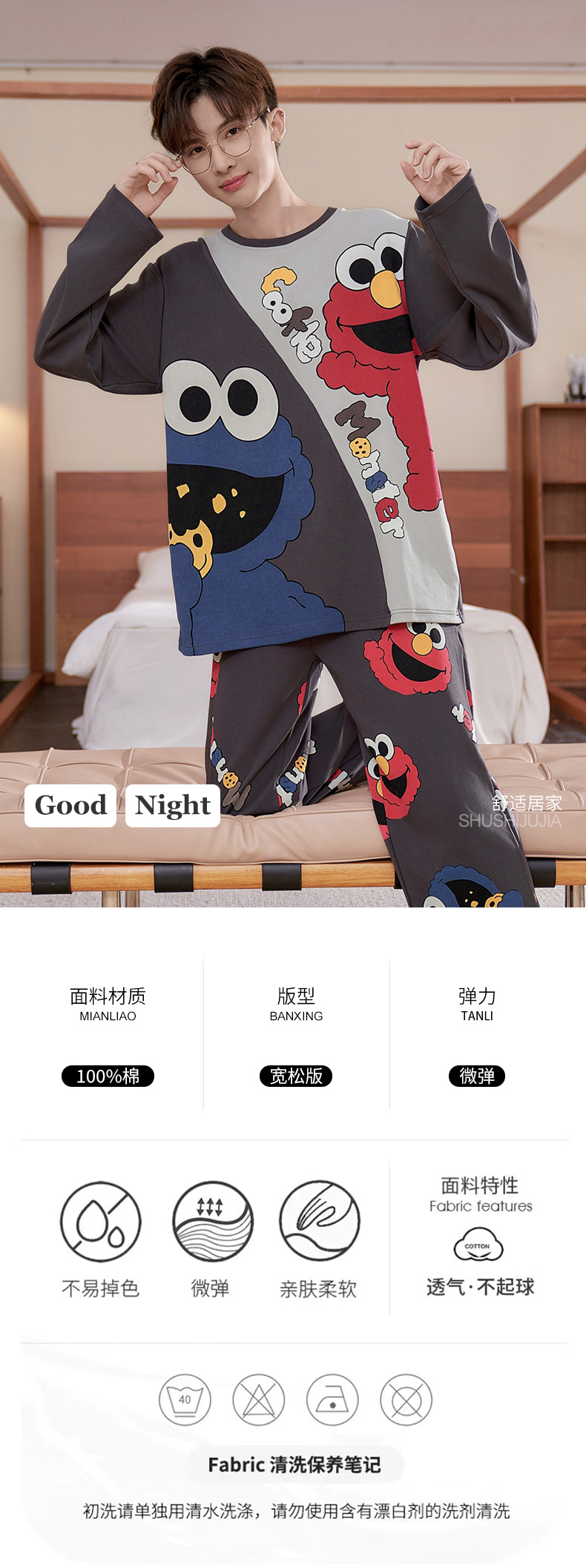 남자 잠옷 봄 가을면 긴 소매 남자 10 대 학생 큰 아이들 2024 새 집 옷 세트스토어 가기