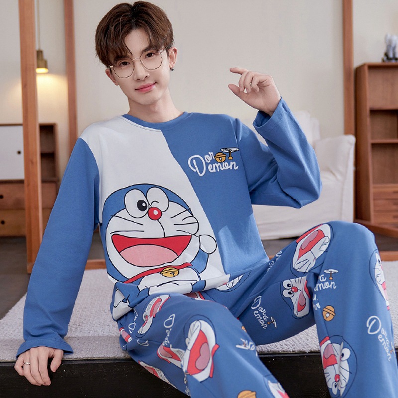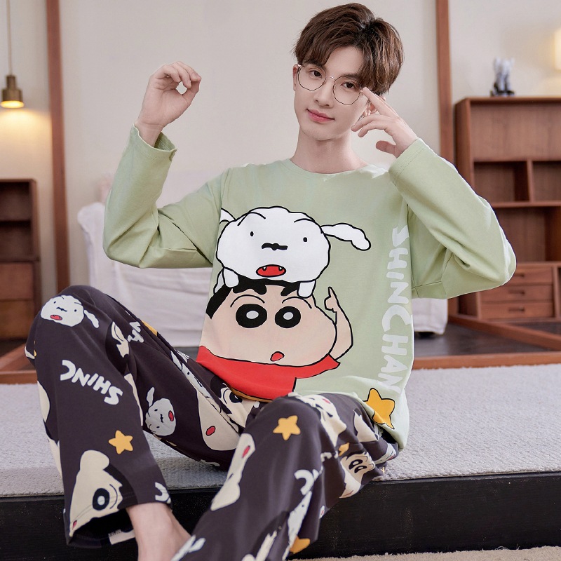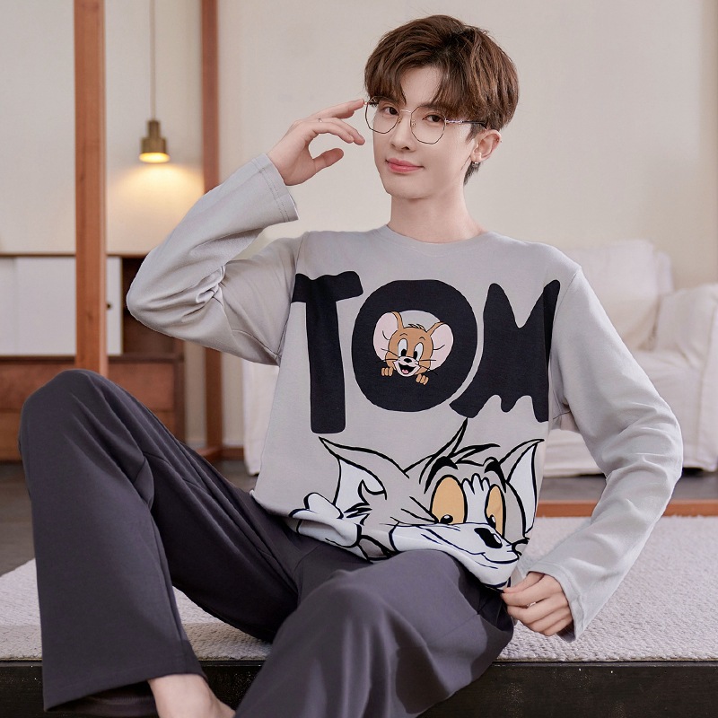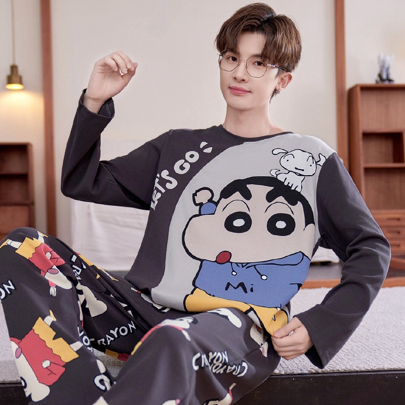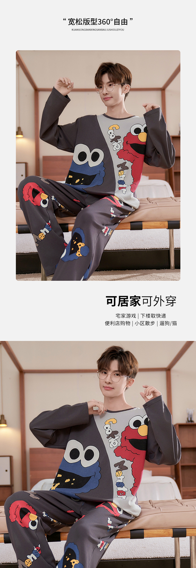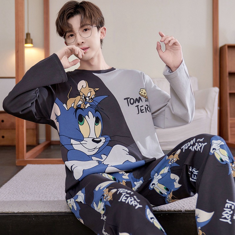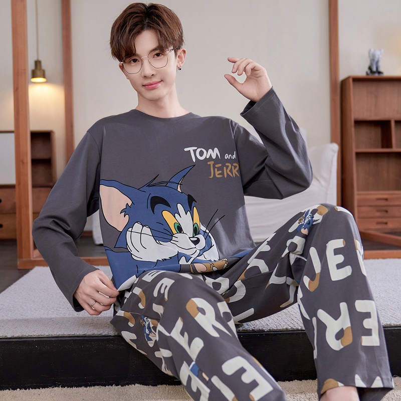 남자 잠옷 봄 가을면 긴 소매 남자 10 대 학생 큰 아이들 2024 새 집 옷 세트스토어 가기