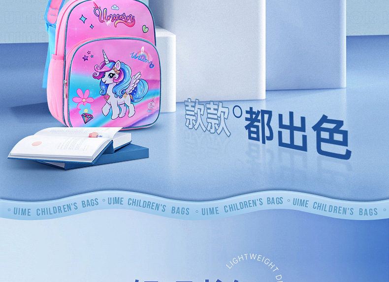 uime 남녀공용 유치원 어린이용 초경량 가방, 패셔너블하고 귀여운 만화 캐릭터 백팩스토어 가기