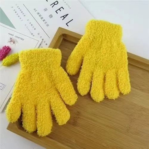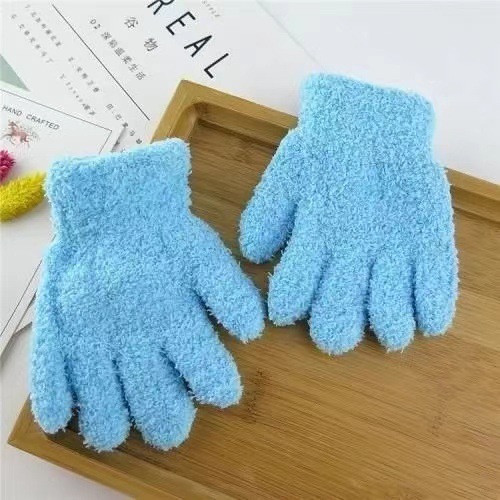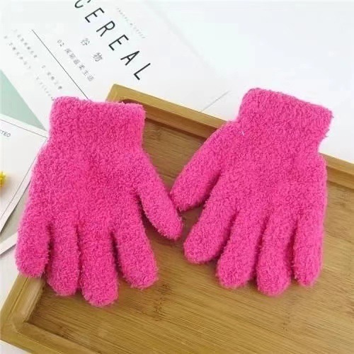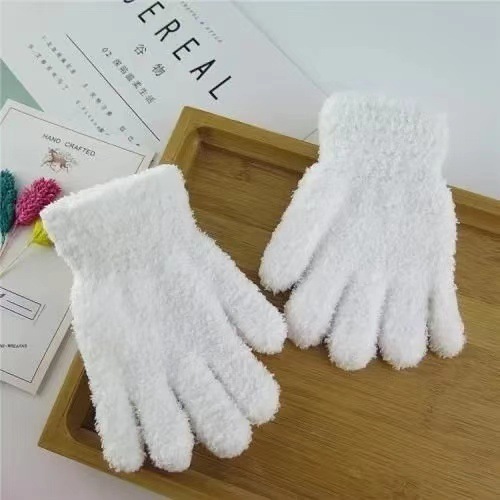 儿童白手套冬季可爱毛绒糖果色跳舞分指手套演出手套五指手套