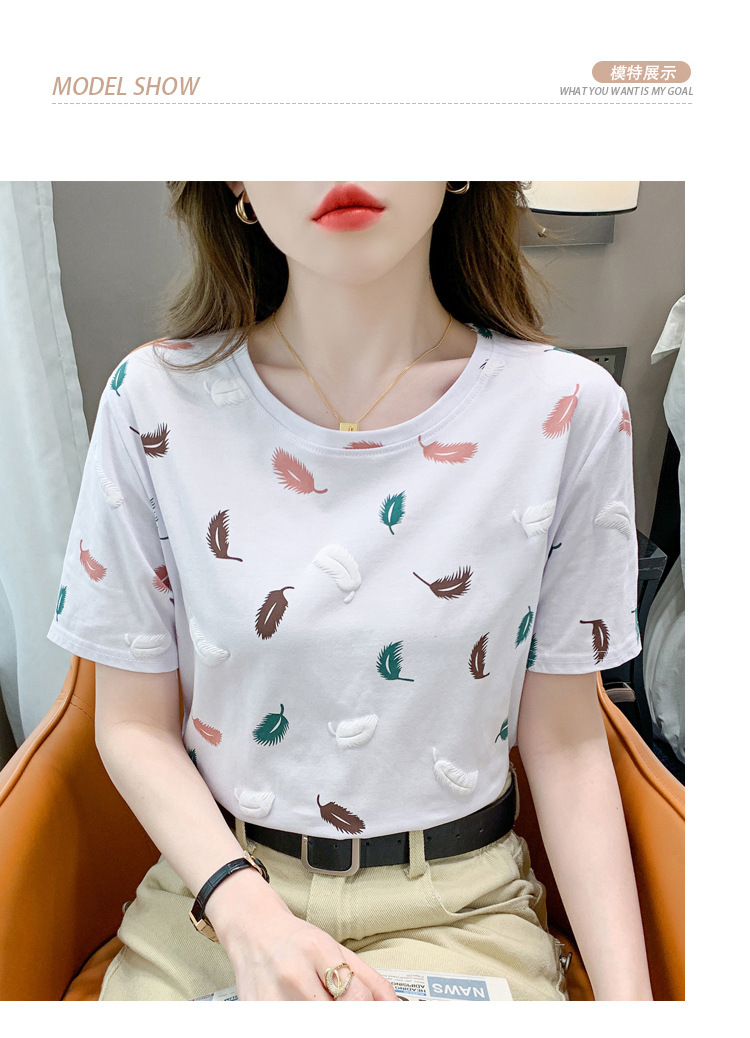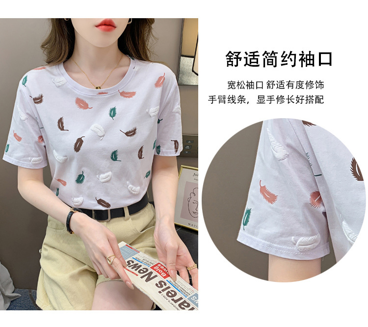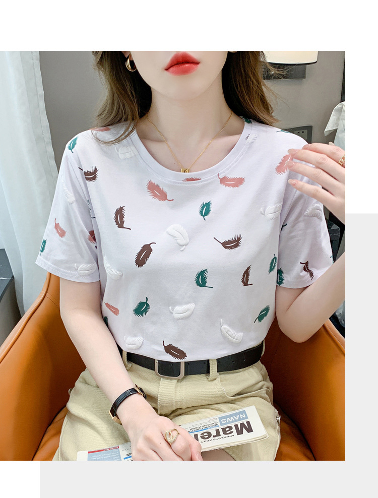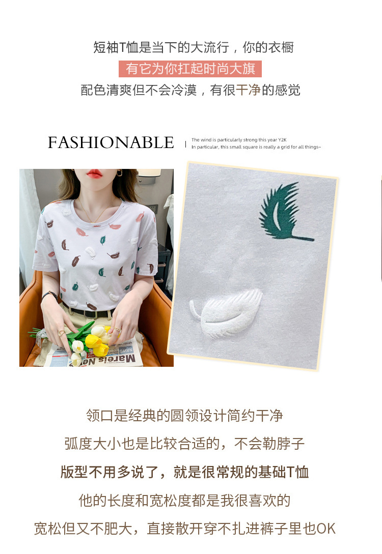 반팔 티셔츠 여성용 화이트 신형 한국식 루즈라운드 넥 넥스 트렌디 크리에이티브 반소매 이너 탑