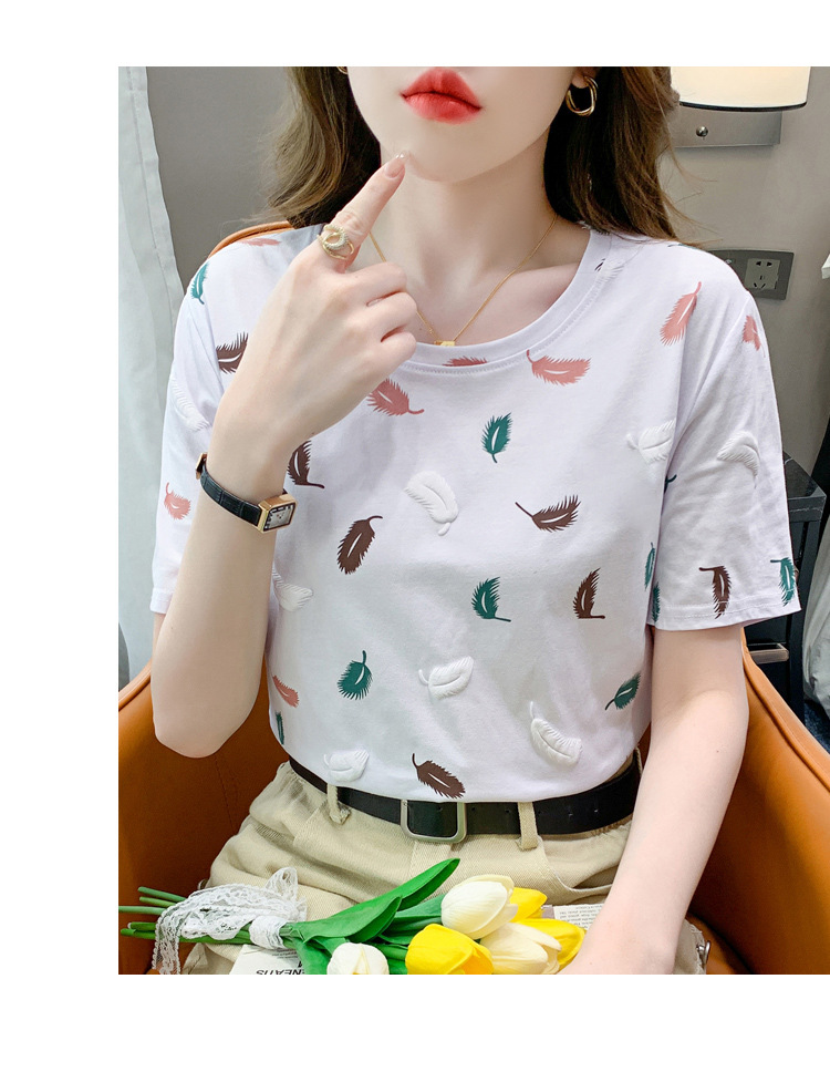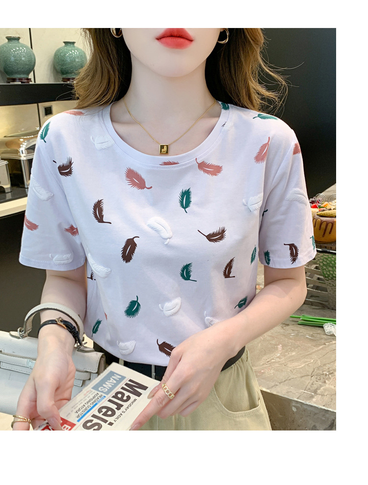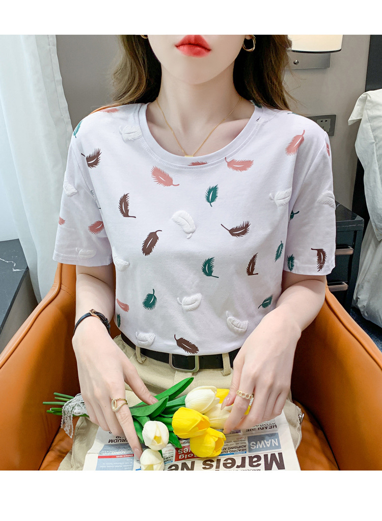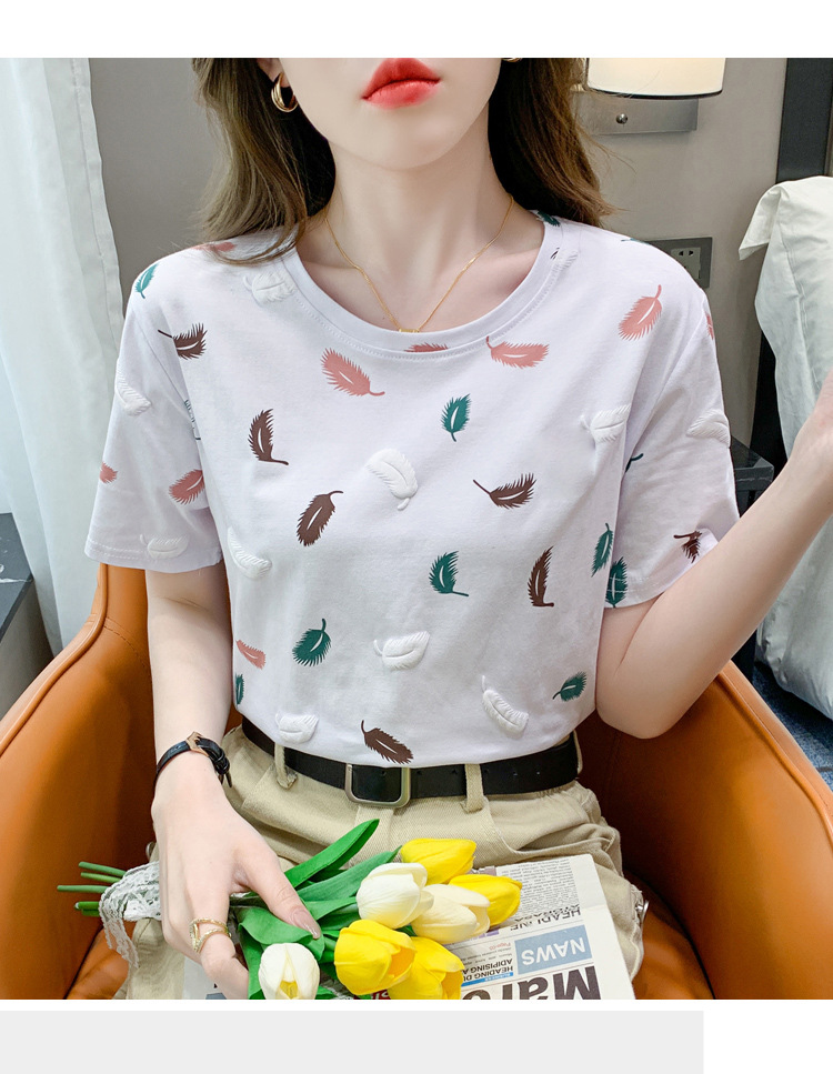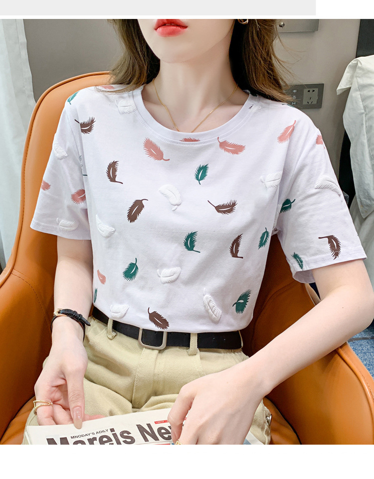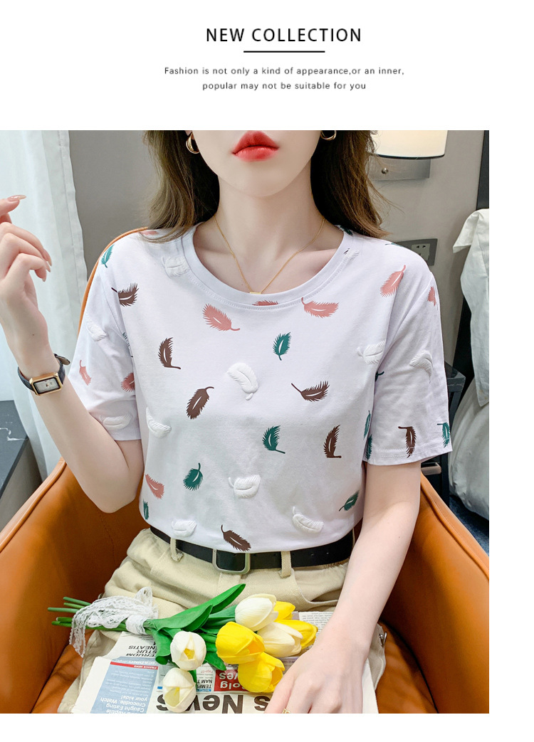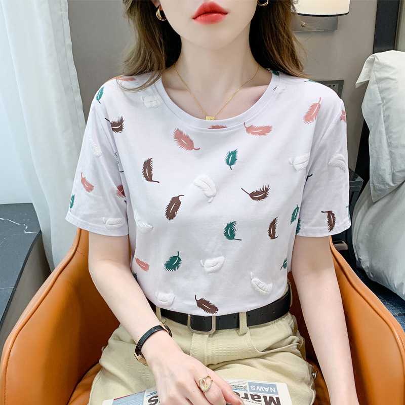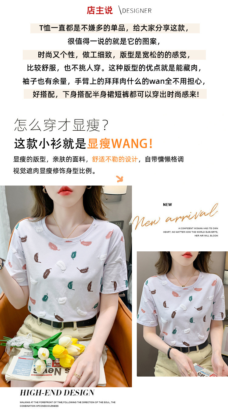 반팔 티셔츠 여성용 화이트 신형 한국식 루즈라운드 넥 넥스 트렌디 크리에이티브 반소매 이너 탑스토어 가기