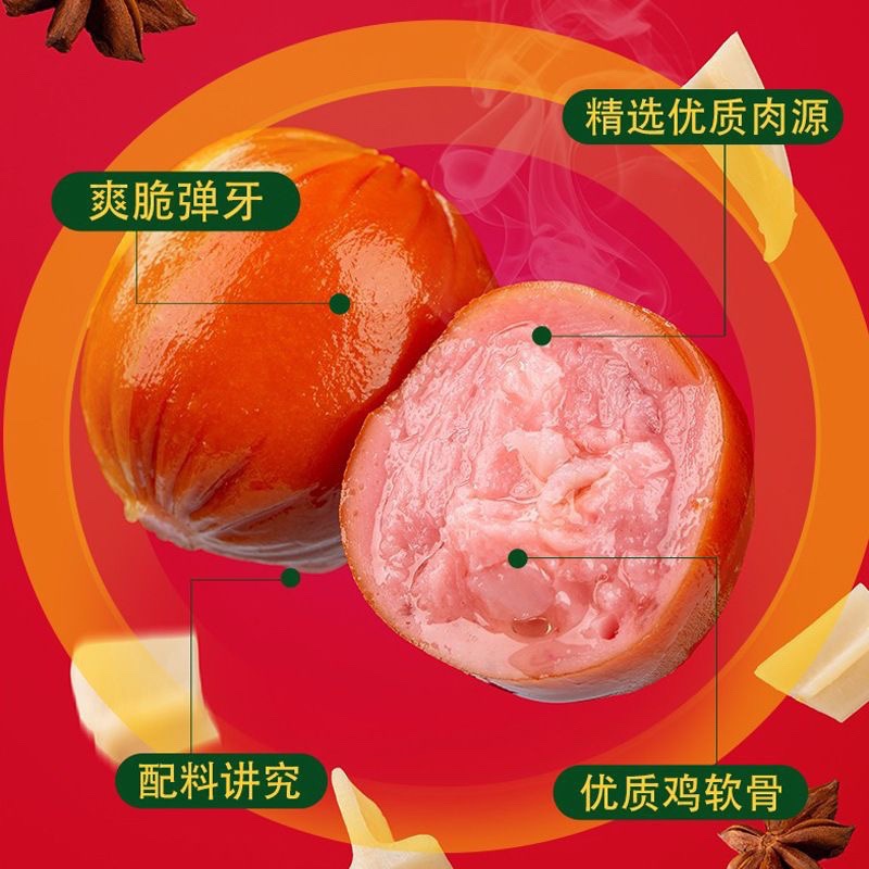 바삭바삭한 뼈살이 들어간 고기 소시지, 매콤한 맛의 바삭바삭 뼈살 소시지, 바로 먹을 수 있는 간식, 드라마 시청 시 입맛을 돋우는 간식, 고기 대추야자 라면 소시지