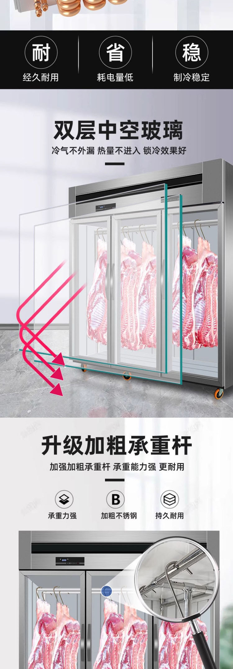 스테인레스 스틸 고기 캐비닛 상업용 냉장 디스플레이 캐비닛 신선한 고기 보존 캐비닛 사워 쇠고기 및 양고기 수직 디스플레이 캐비닛