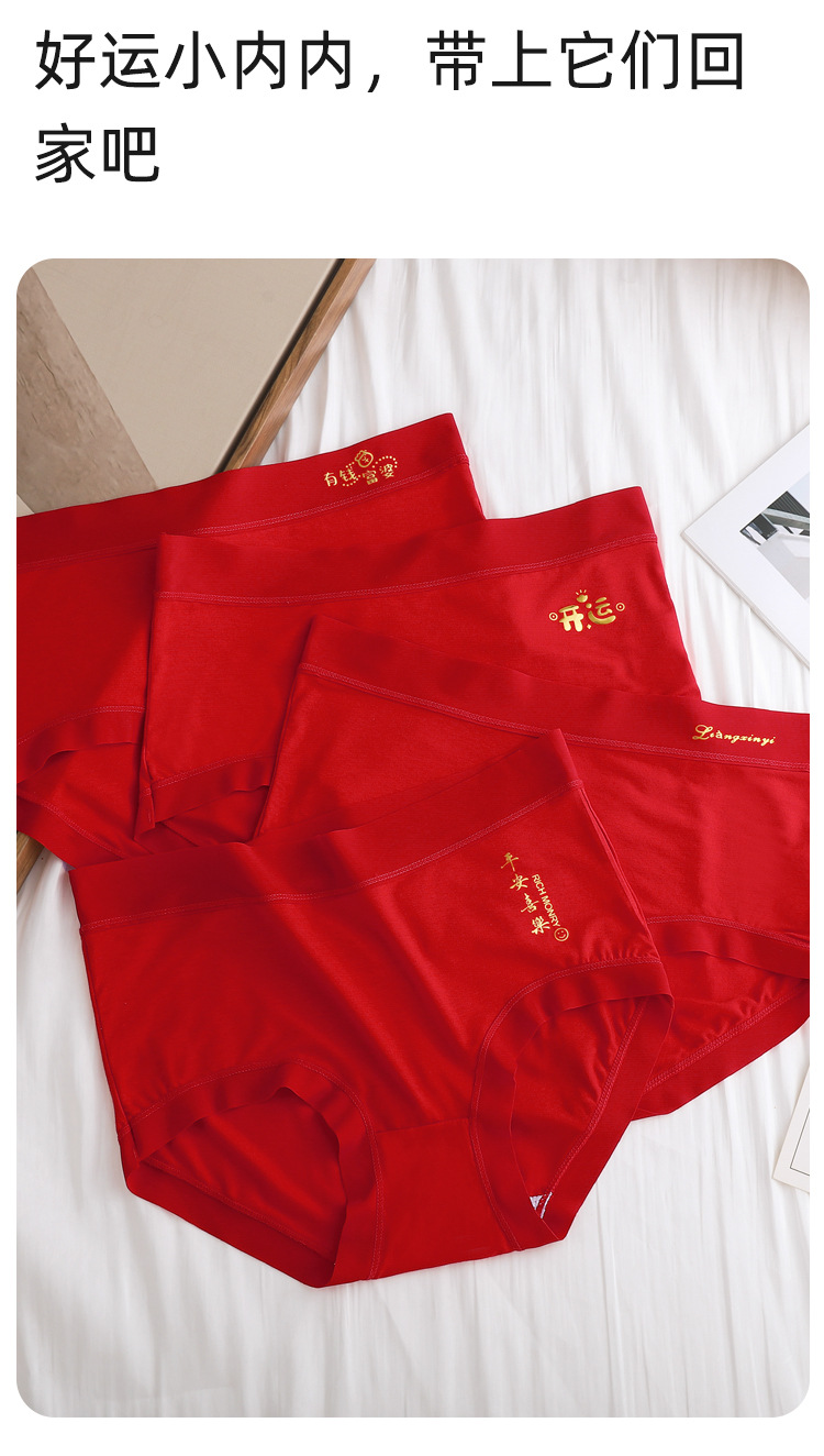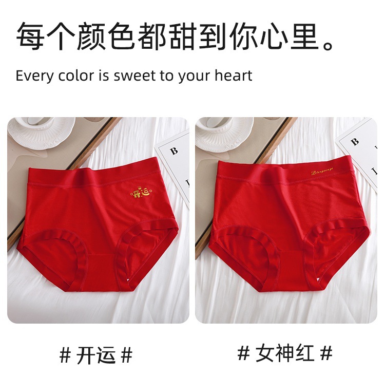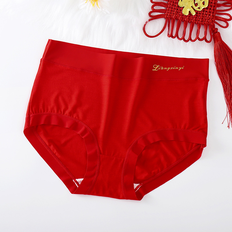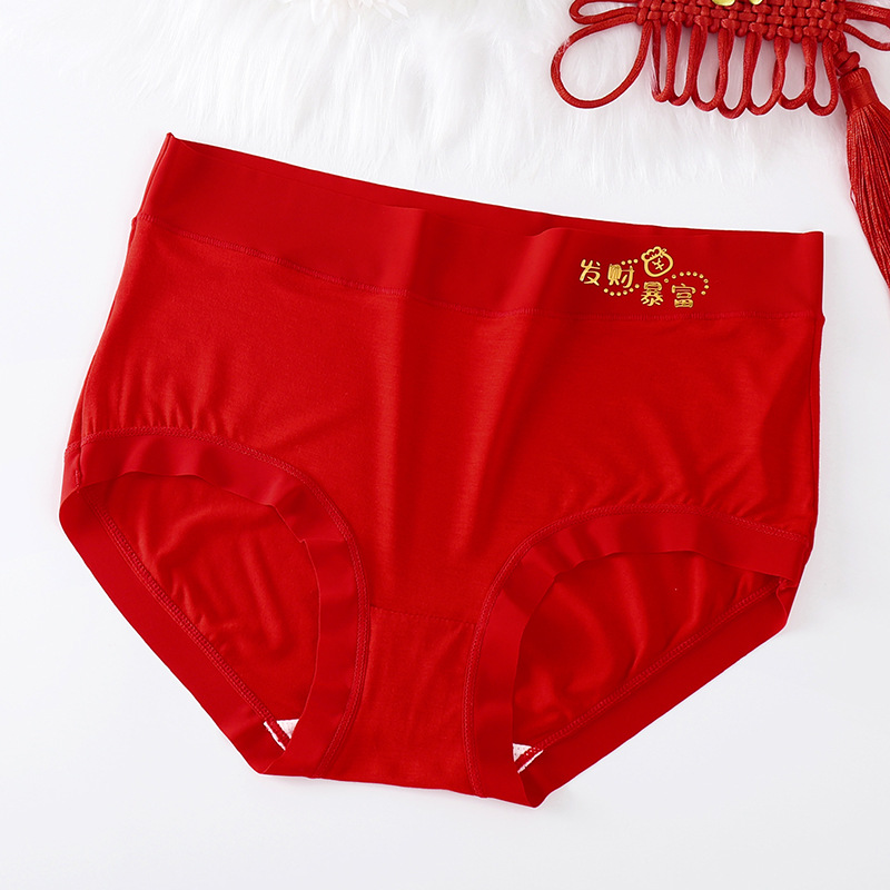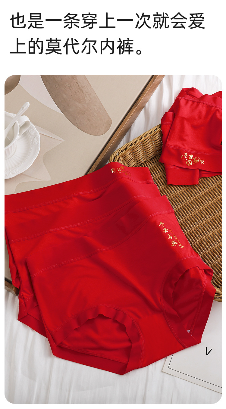 다이파 모달 레드 속옷 여성 웨딩 5A 항균 파일 중간 허리 엉덩이 통기성 삼각형 반바지