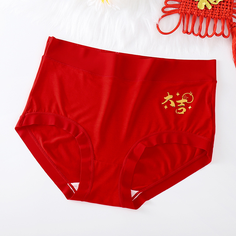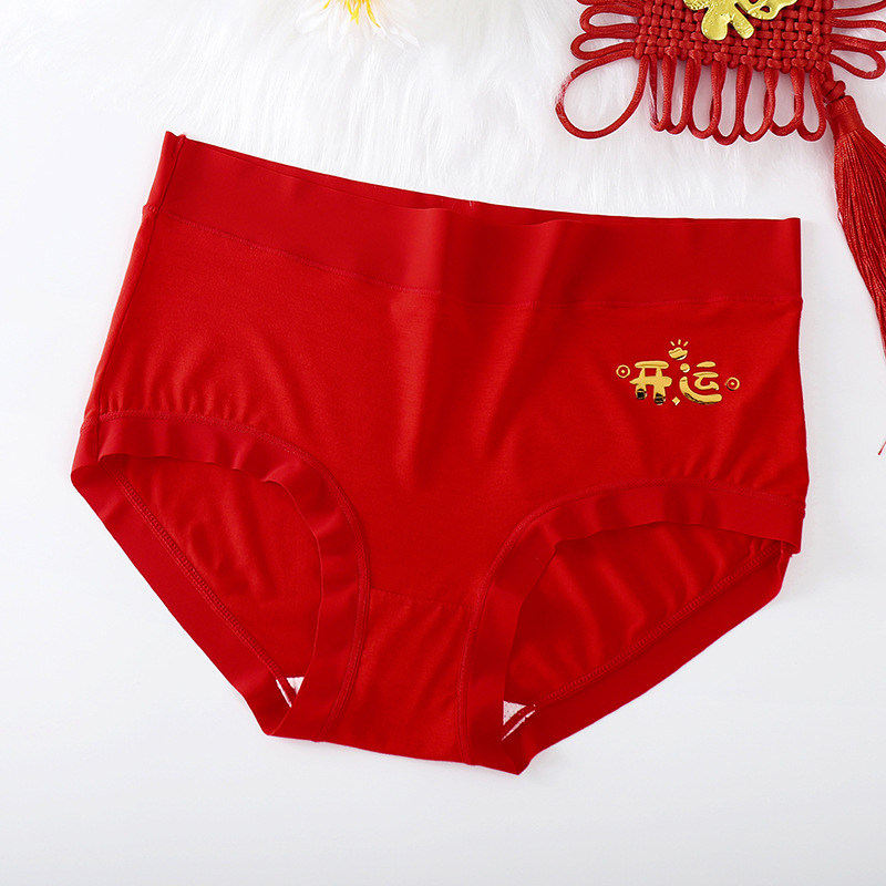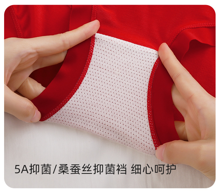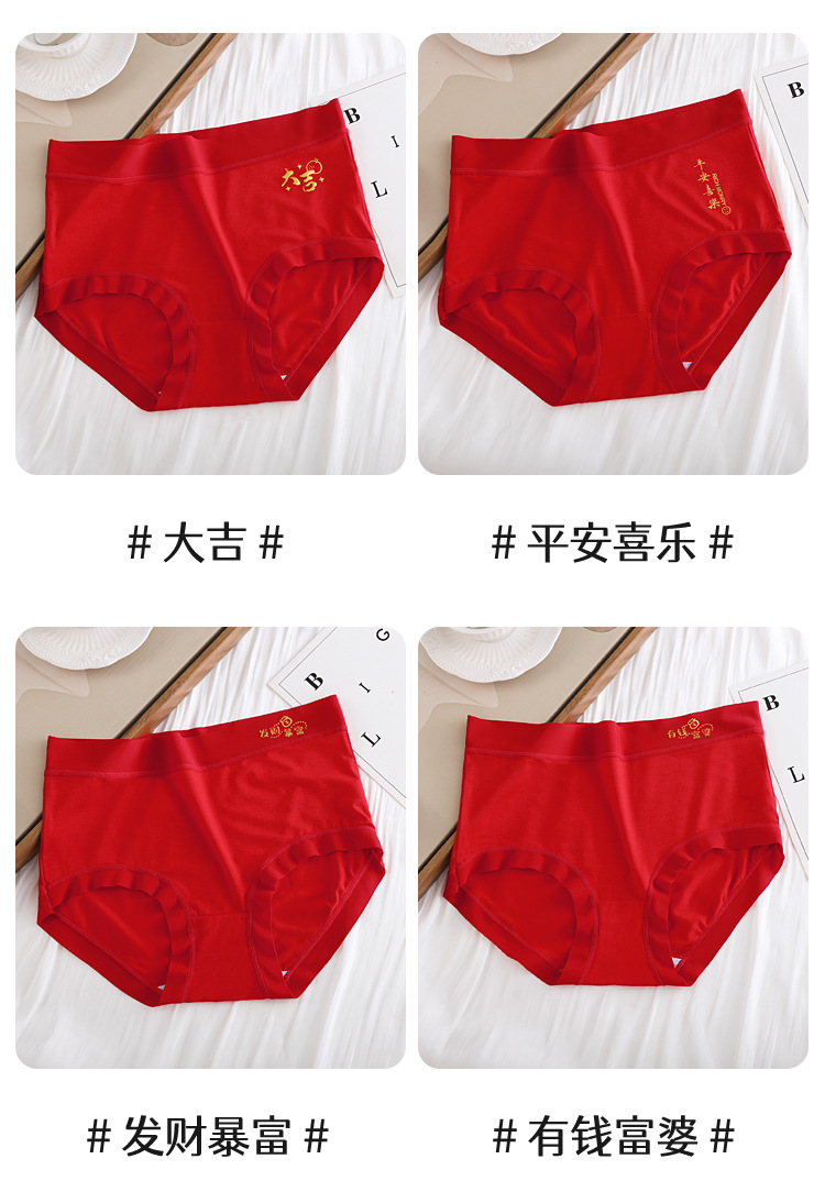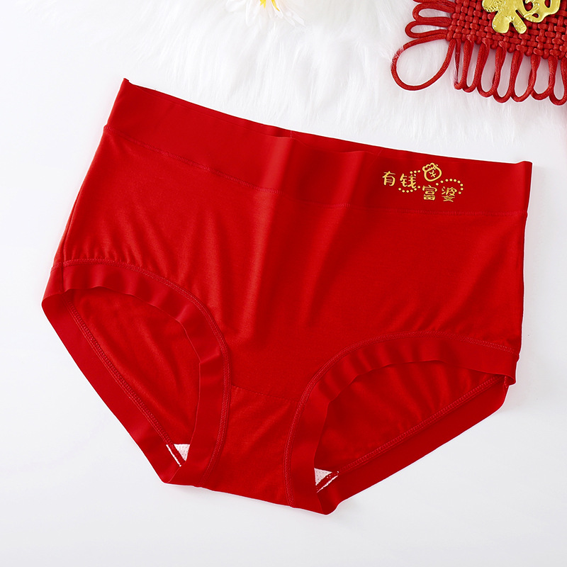 다이파 모달 레드 속옷 여성 웨딩 5A 항균 파일 중간 허리 엉덩이 통기성 삼각형 반바지