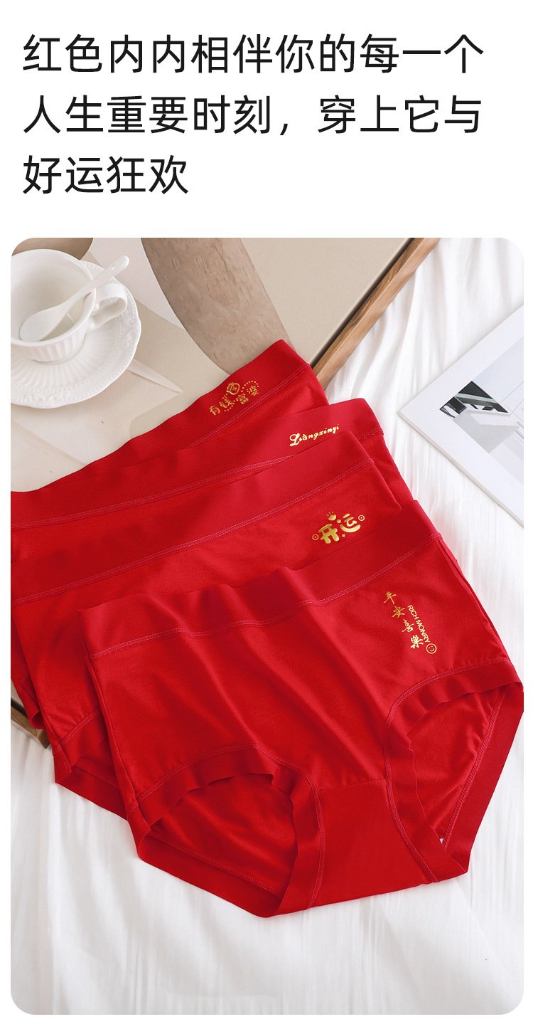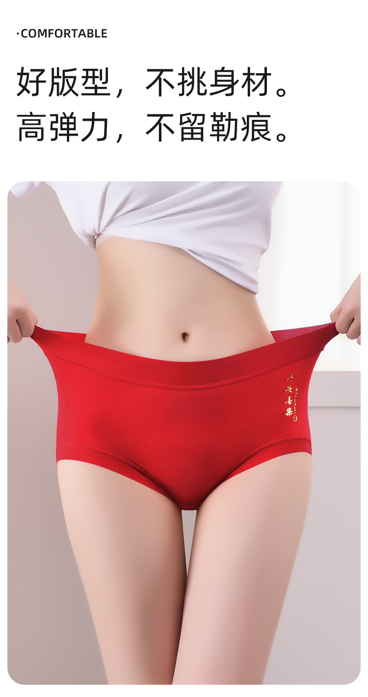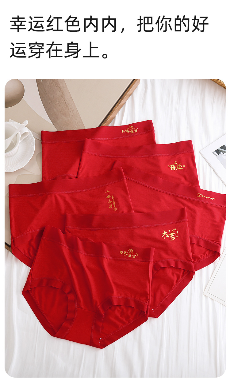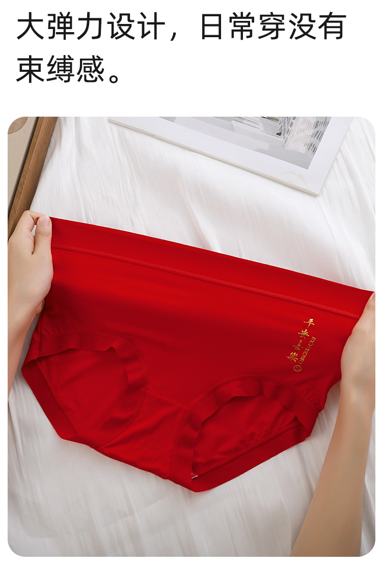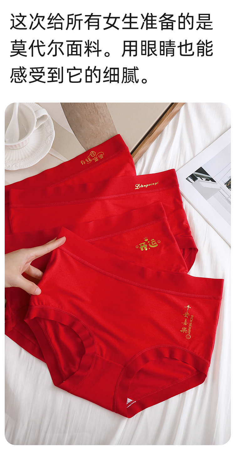 다이파 모달 레드 속옷 여성 웨딩 5A 항균 파일 중간 허리 엉덩이 통기성 삼각형 반바지스토어 가기