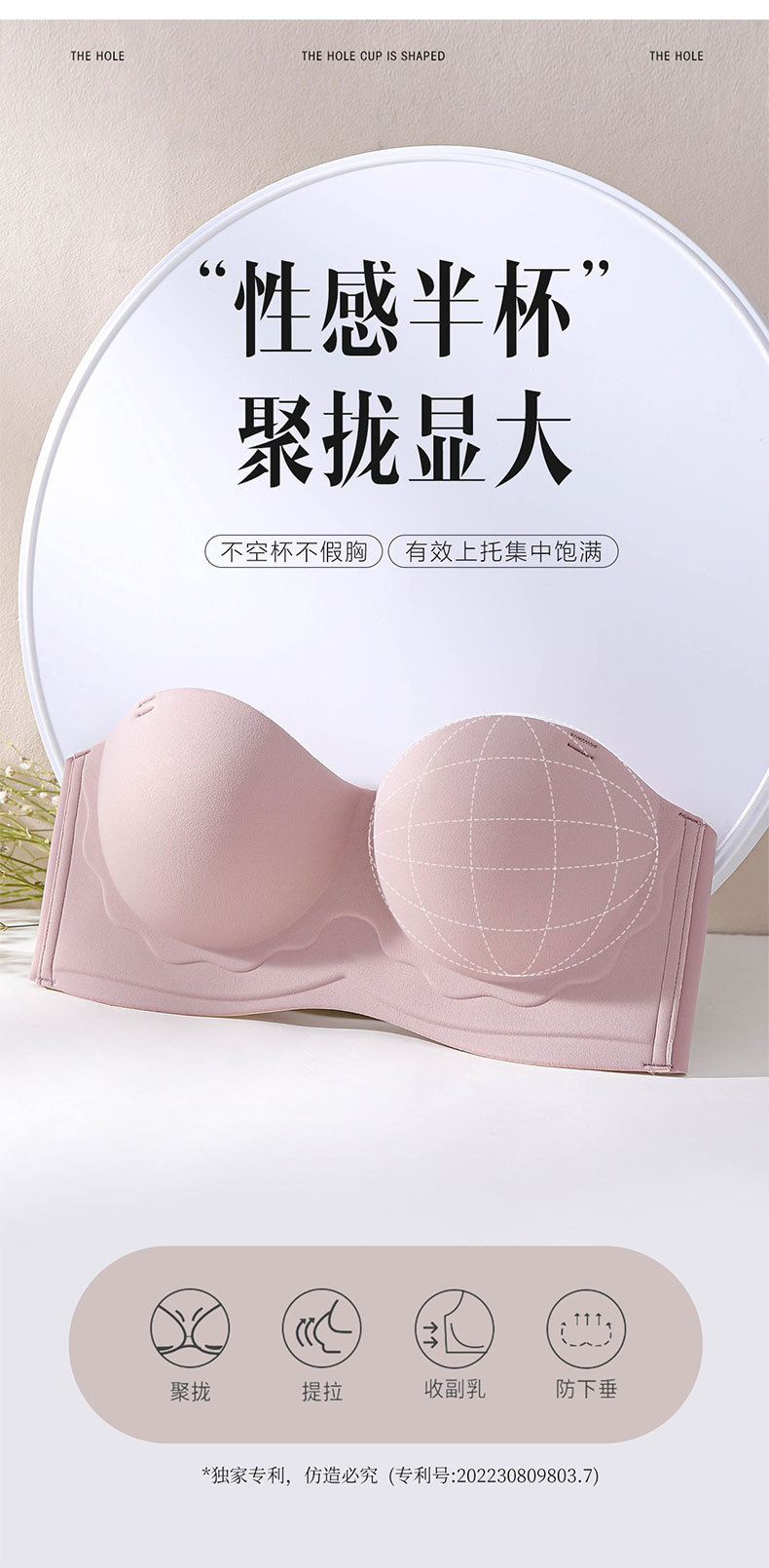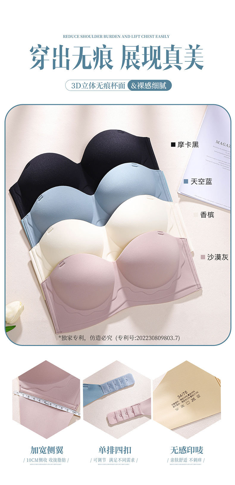 오리지널 정품 6085 시 멀티 앙상블 원활한 하프 컵 속옷 스틸 링 끈이없는 단일 브레스트 브라없이 수집스토어 가기