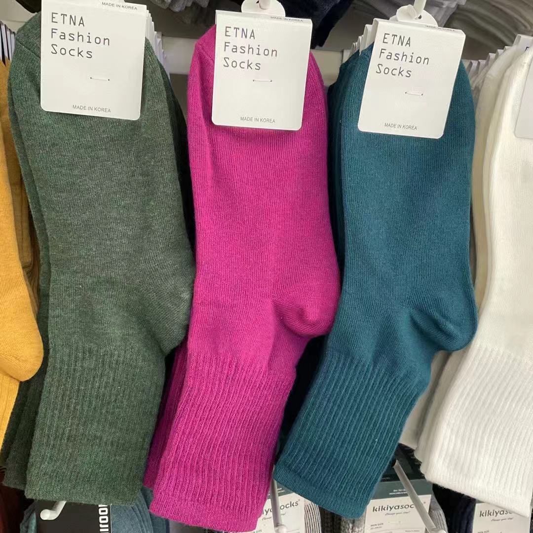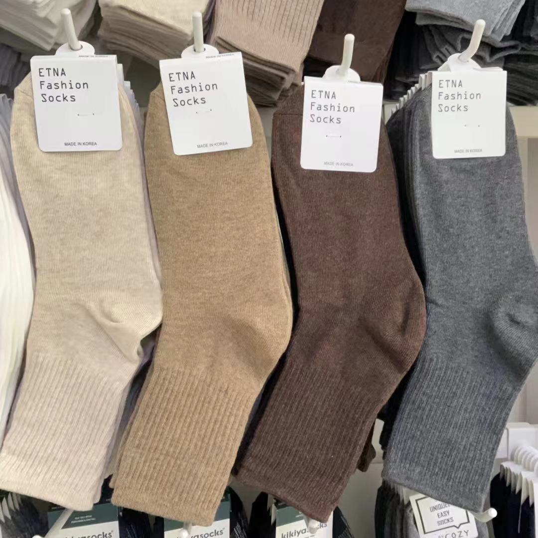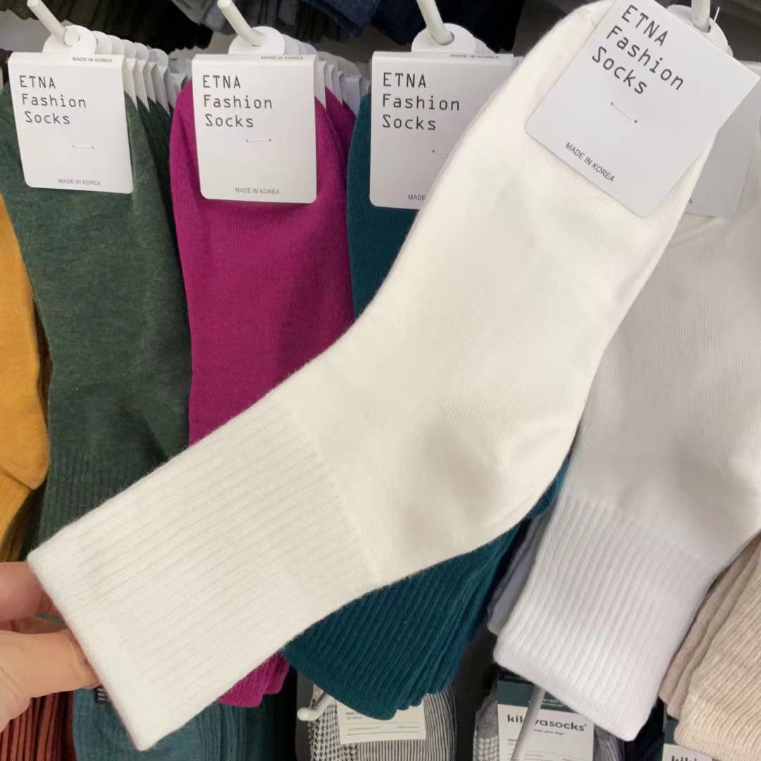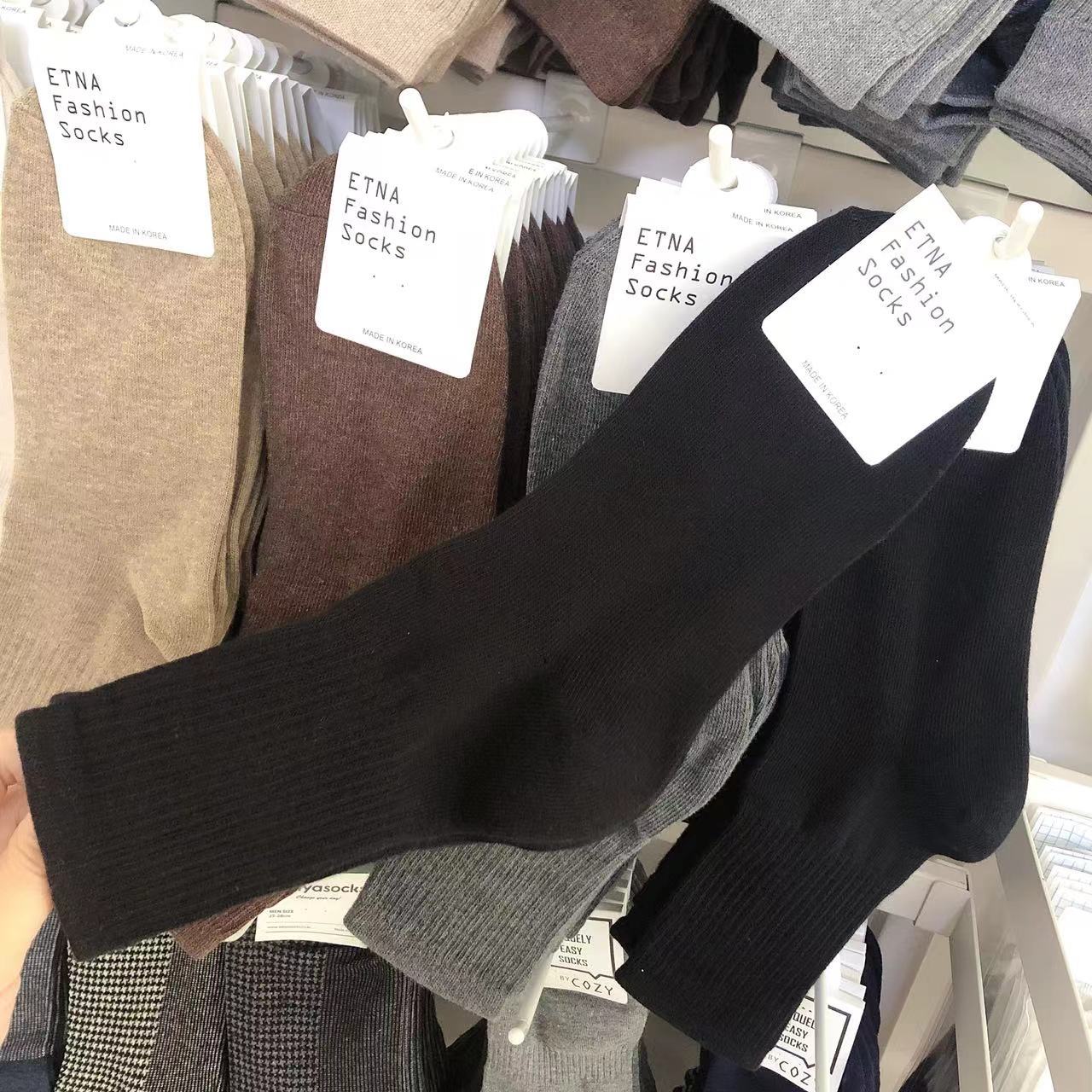 한국 수입 양말 ETNA 솔리드 컬러 코튼 양말 가을과 겨울 두꺼운 실 타이트 일본 스타일 간단한 텍스트 중간 튜브 양말스토어 가기