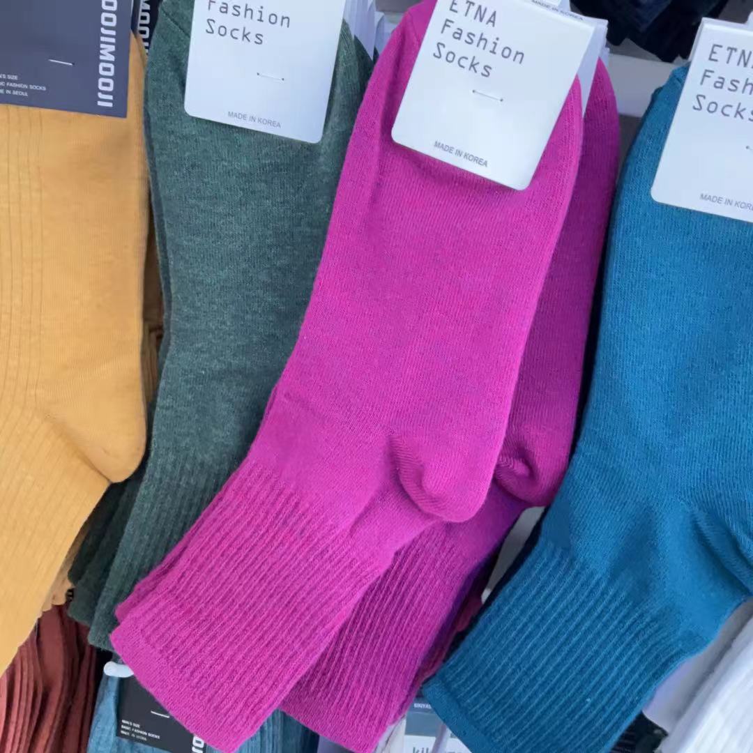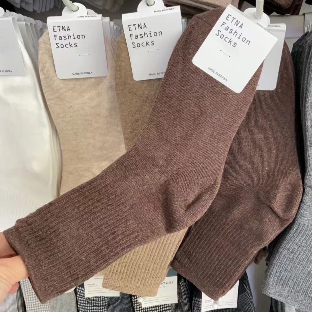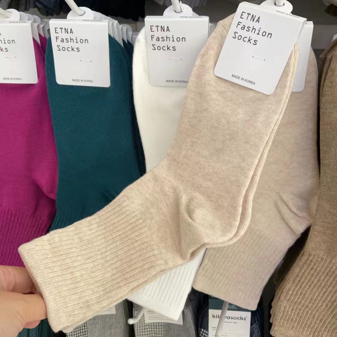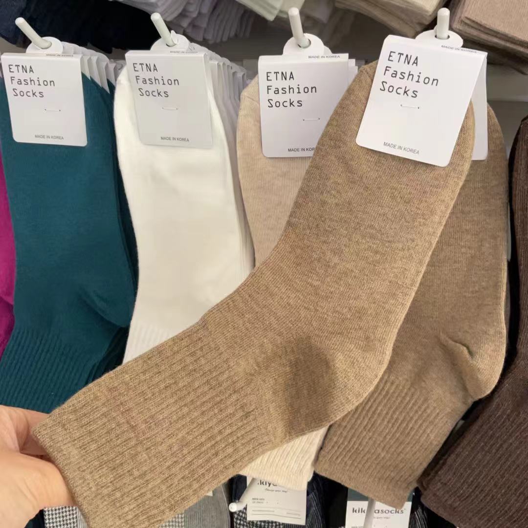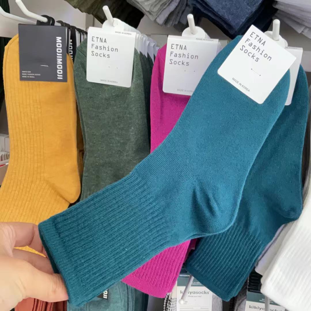 한국 수입 양말 ETNA 솔리드 컬러 코튼 양말 가을과 겨울 두꺼운 실 타이트 일본 스타일 간단한 텍스트 중간 튜브 양말스토어 가기