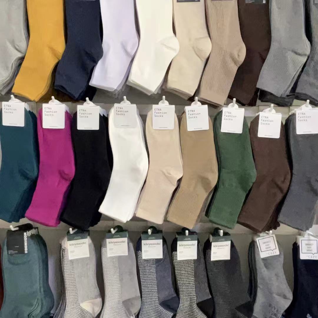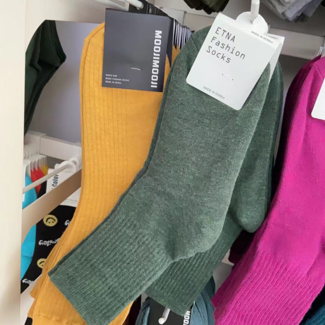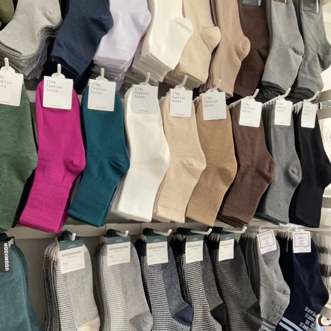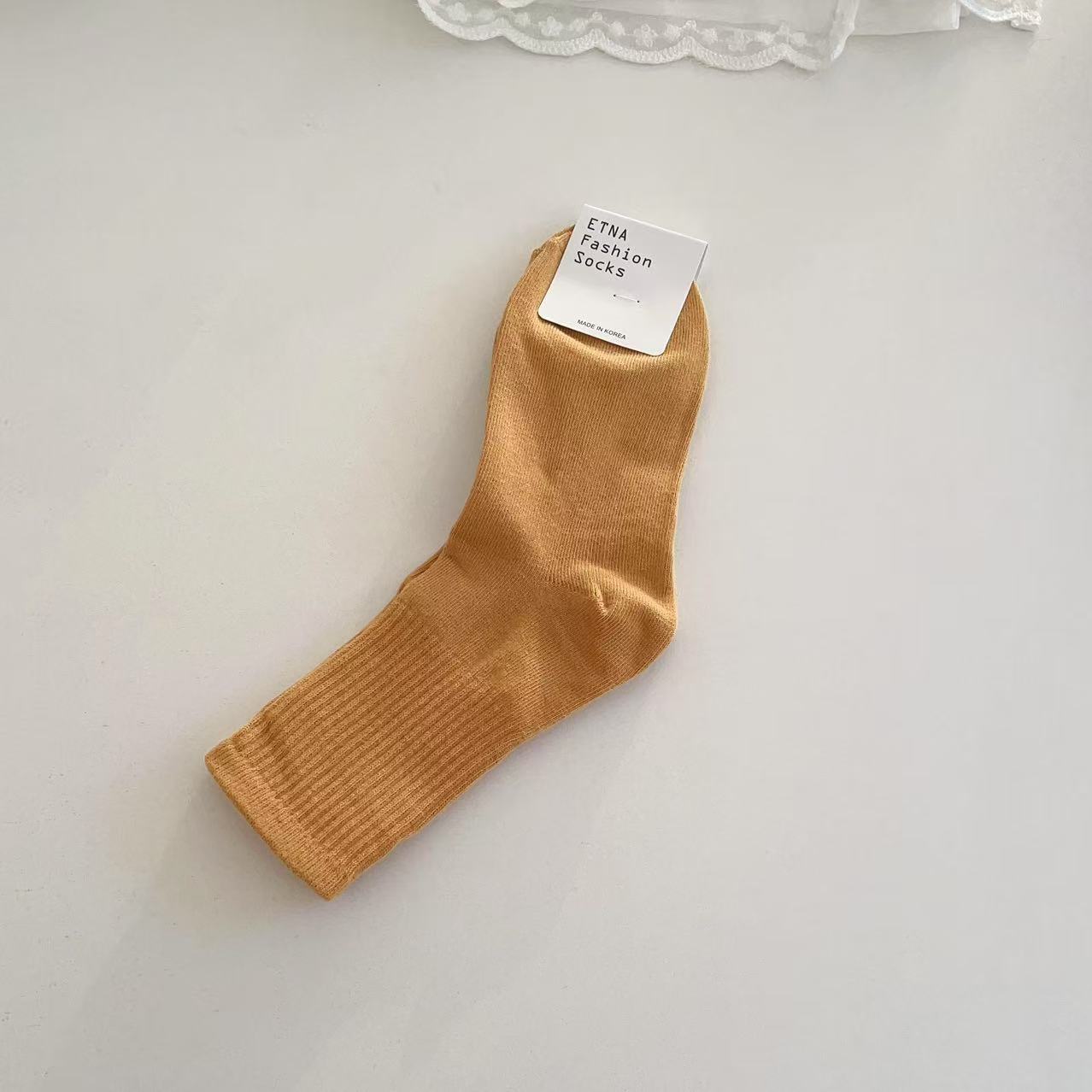 한국 수입 양말 ETNA 솔리드 컬러 코튼 양말 가을과 겨울 두꺼운 실 타이트 일본 스타일 간단한 텍스트 중간 튜브 양말스토어 가기