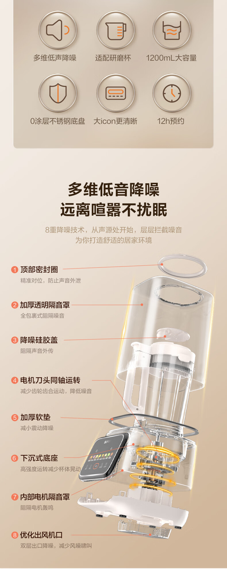 수포 벽 깨는 기계 1.2L 방음 및 소음 감소 저음 다기능 필터가없는 대두 우유 기계 혼합 과즙 짜는기 SP616S스토어 가기