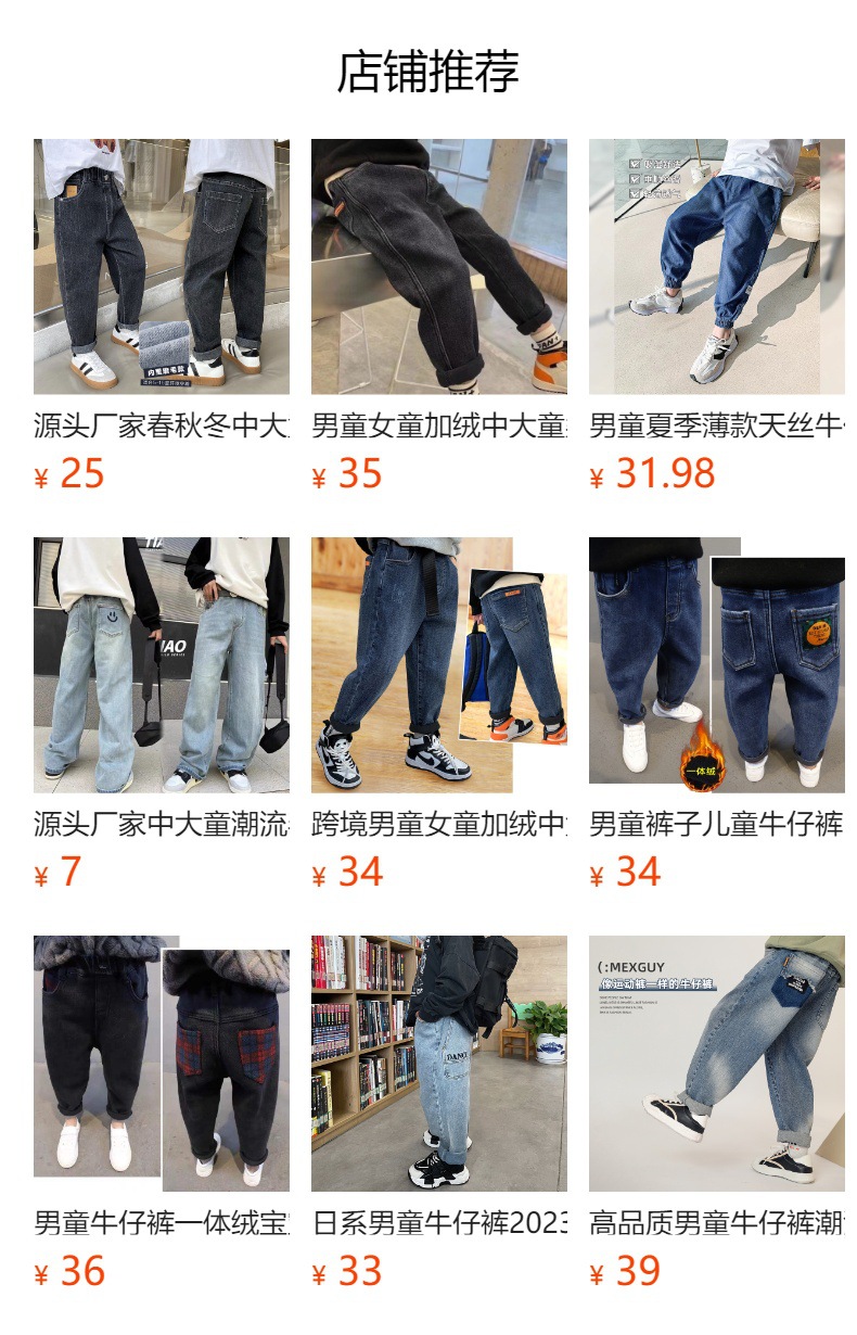 재고 제조 업체 어린이 바지 느슨한 어린이 레저 소년 청바지 가을과 겨울 조수 브랜드 해외 무역 머리카락의 세대스토어 가기