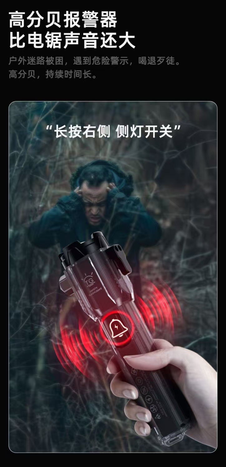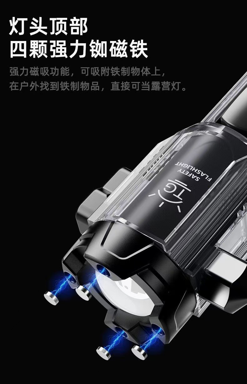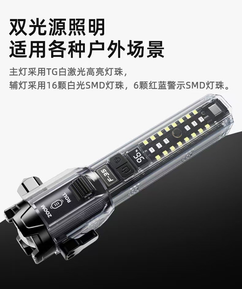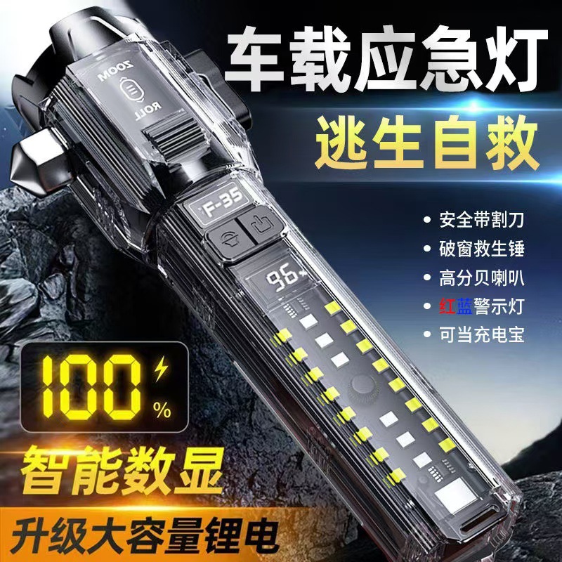 커터 야외 밝은 휴대용 출력 충전식 손전등 경적을 가진 국경 새로운 롤러 줌 해머스토어 가기