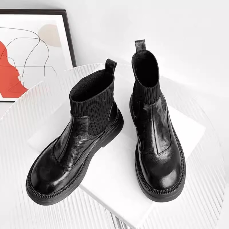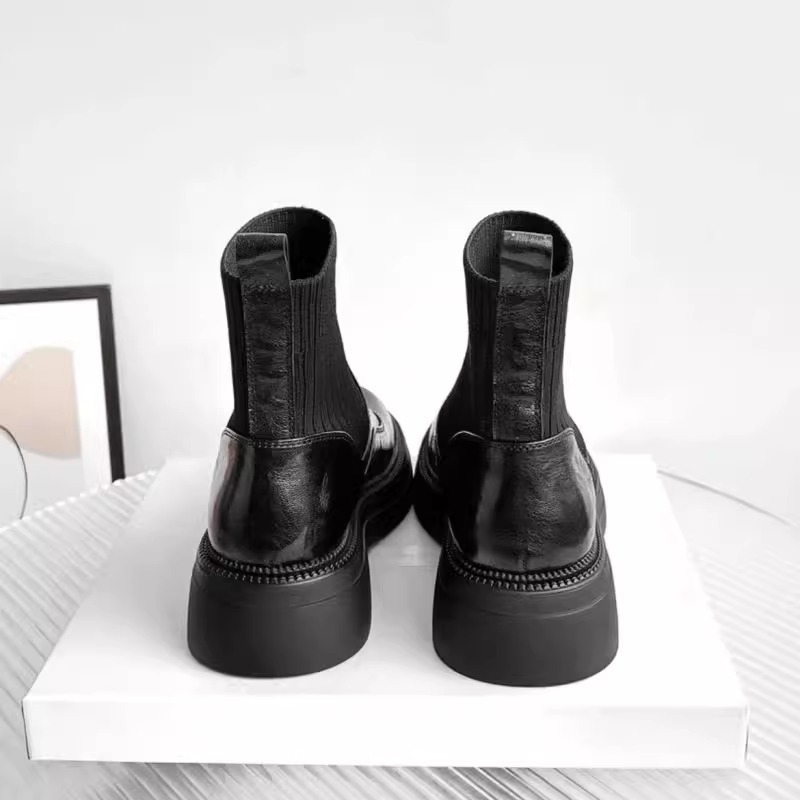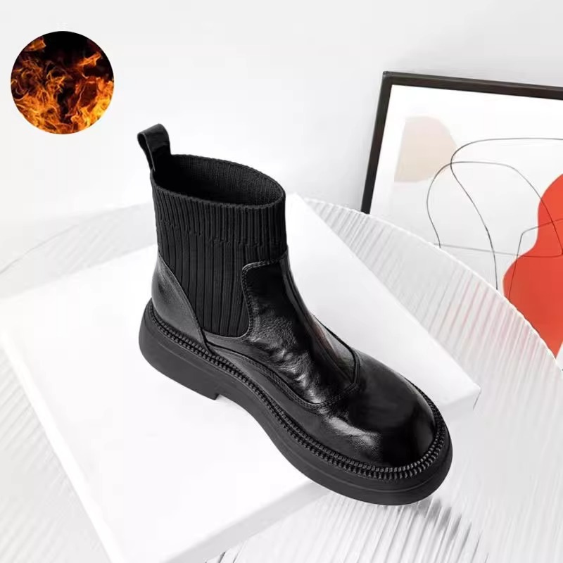 영국 스타일, 두꺼운 바닥 증가 마틴 부츠 여성의 2024 겨울 새 기모 짧은 부츠 스트레치 부츠 따뜻한 얇은 부츠스토어 가기