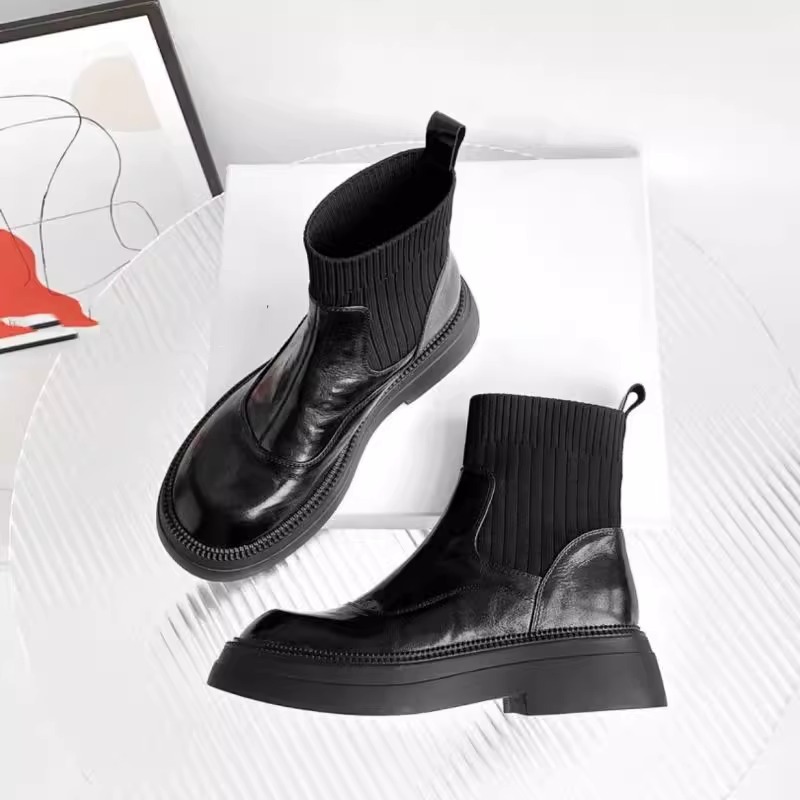 영국 스타일, 두꺼운 바닥 증가 마틴 부츠 여성의 2024 겨울 새 기모 짧은 부츠 스트레치 부츠 따뜻한 얇은 부츠