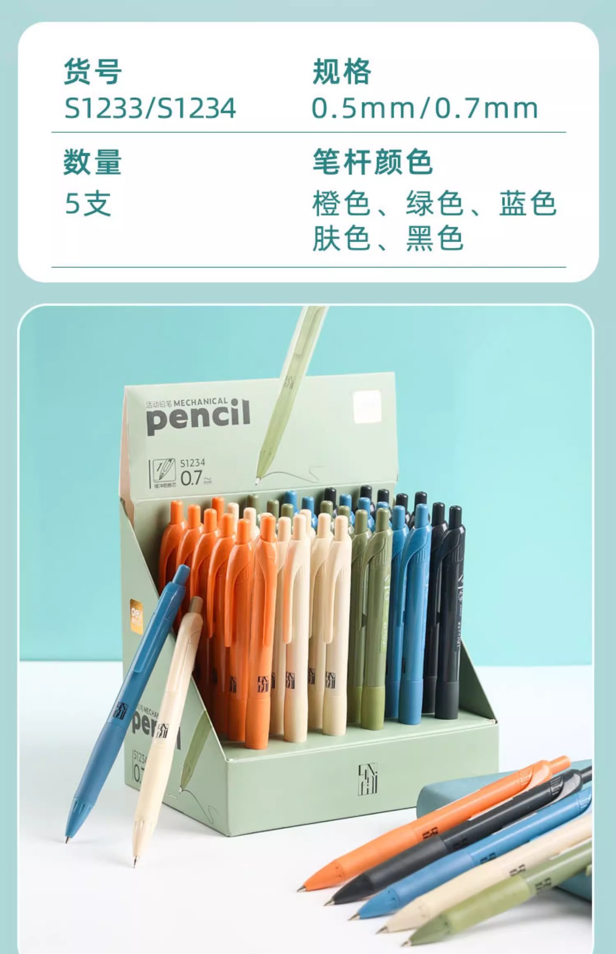 초등학교 학생을위한 델리 S1234 자동 연필 3 학년 0.7 자동 연필 연속 코어 2 학년스토어 가기