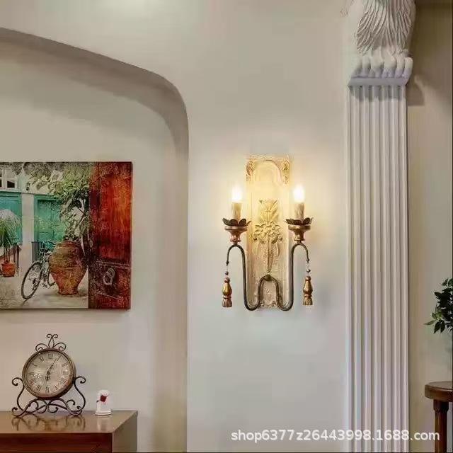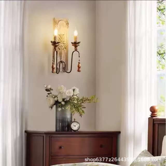 미국 더블 침실 침실 램프 빈티지 나무 예술 거실 램프 복도 입구 아트 계단 벽 램프 빈티지 장식