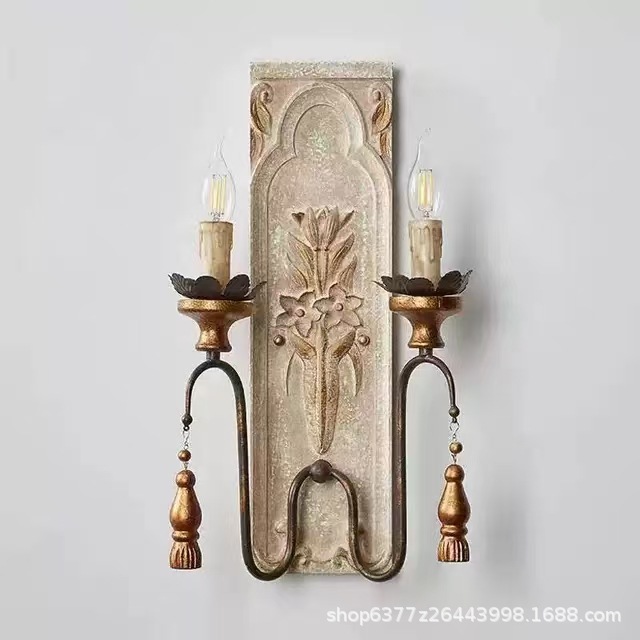 미국 더블 침실 침실 램프 빈티지 나무 예술 거실 램프 복도 입구 아트 계단 벽 램프 빈티지 장식스토어 가기