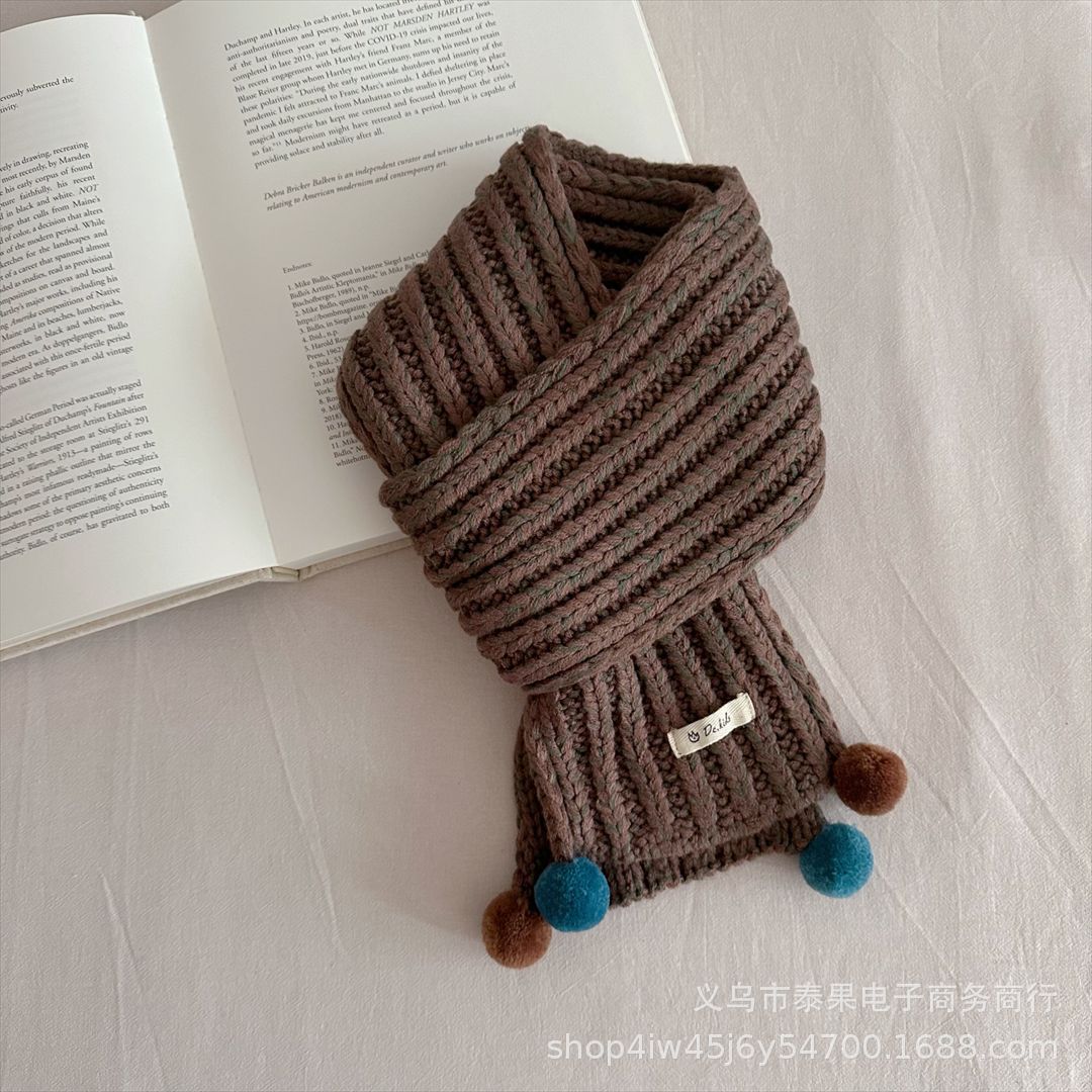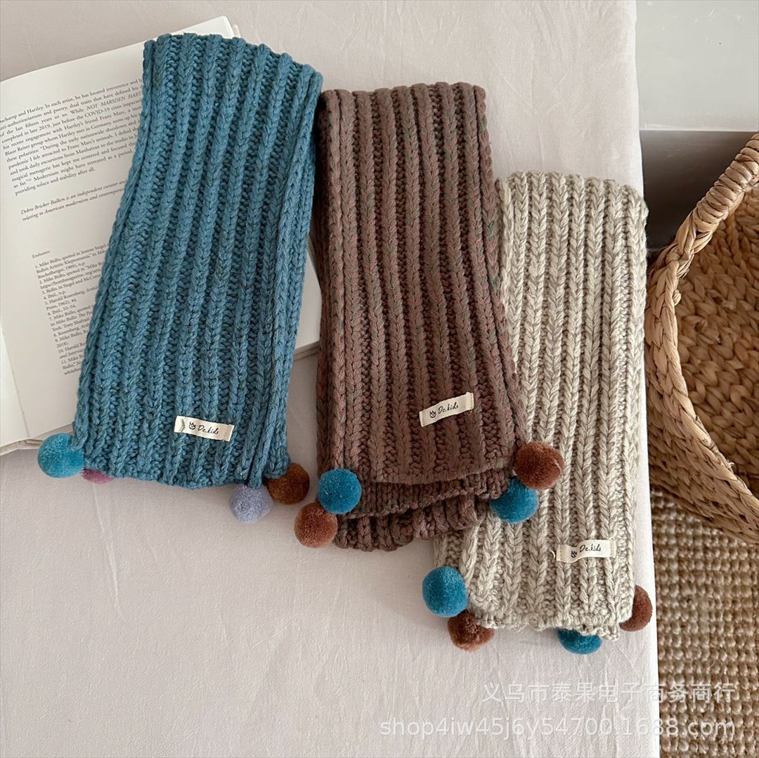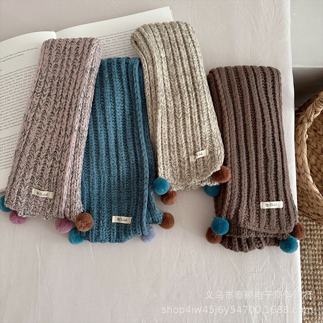 한국 어린이 작은 공 양모 니트 좁은 긴 스카프 소년 소녀를위한 겨울 따뜻한 올매치 목 보호 스카프