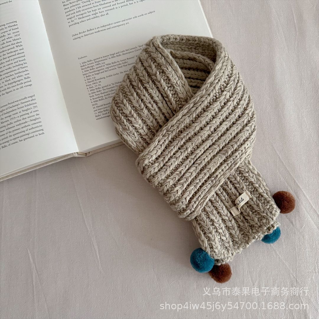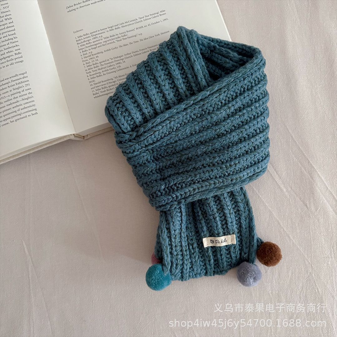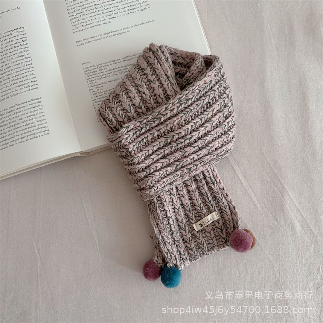 한국 어린이 작은 공 양모 니트 좁은 긴 스카프 소년 소녀를위한 겨울 따뜻한 올매치 목 보호 스카프