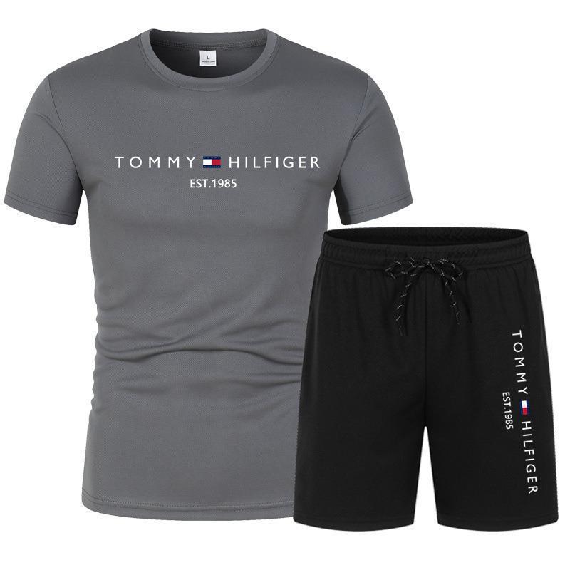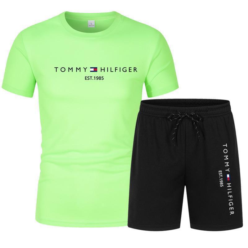 국경 간 대외 무역 새로운 2024 캐주얼 남성 메쉬 짧은 소매 반바지 투피스 패션 스포츠 통기성 세트 남성