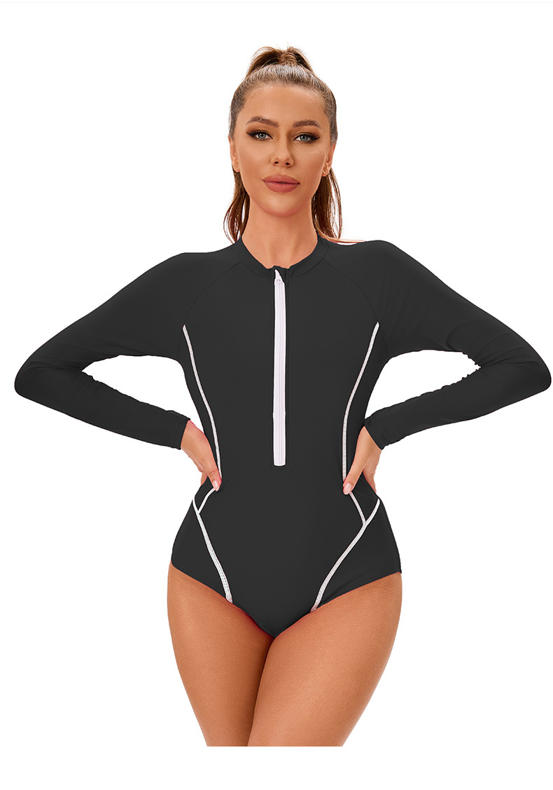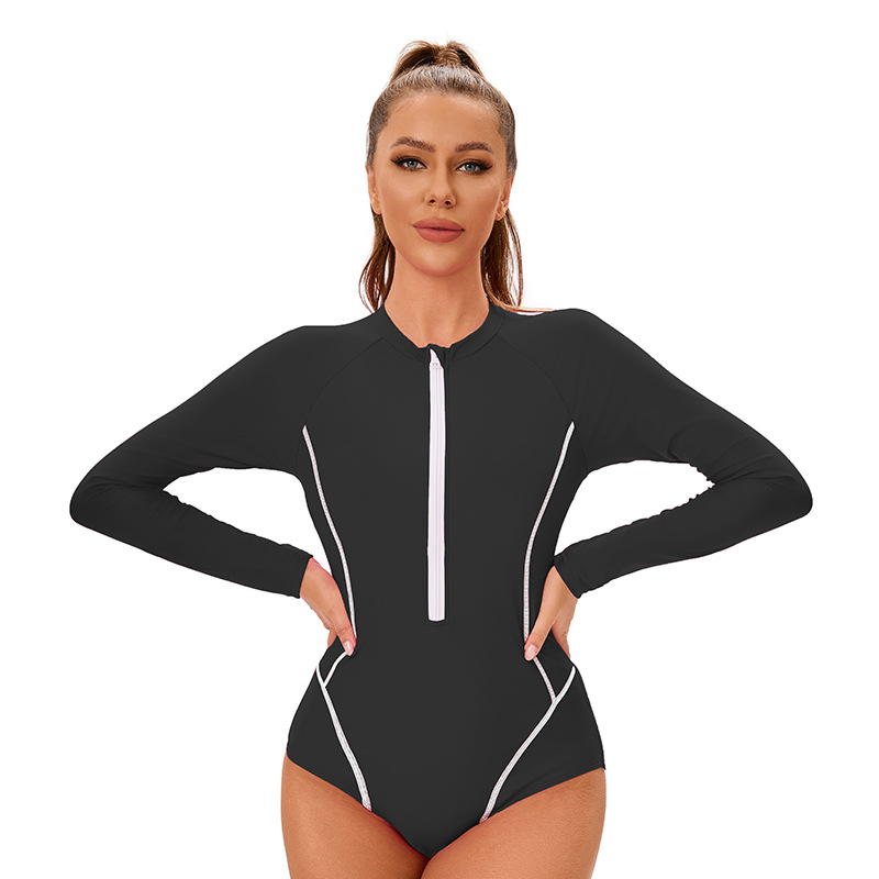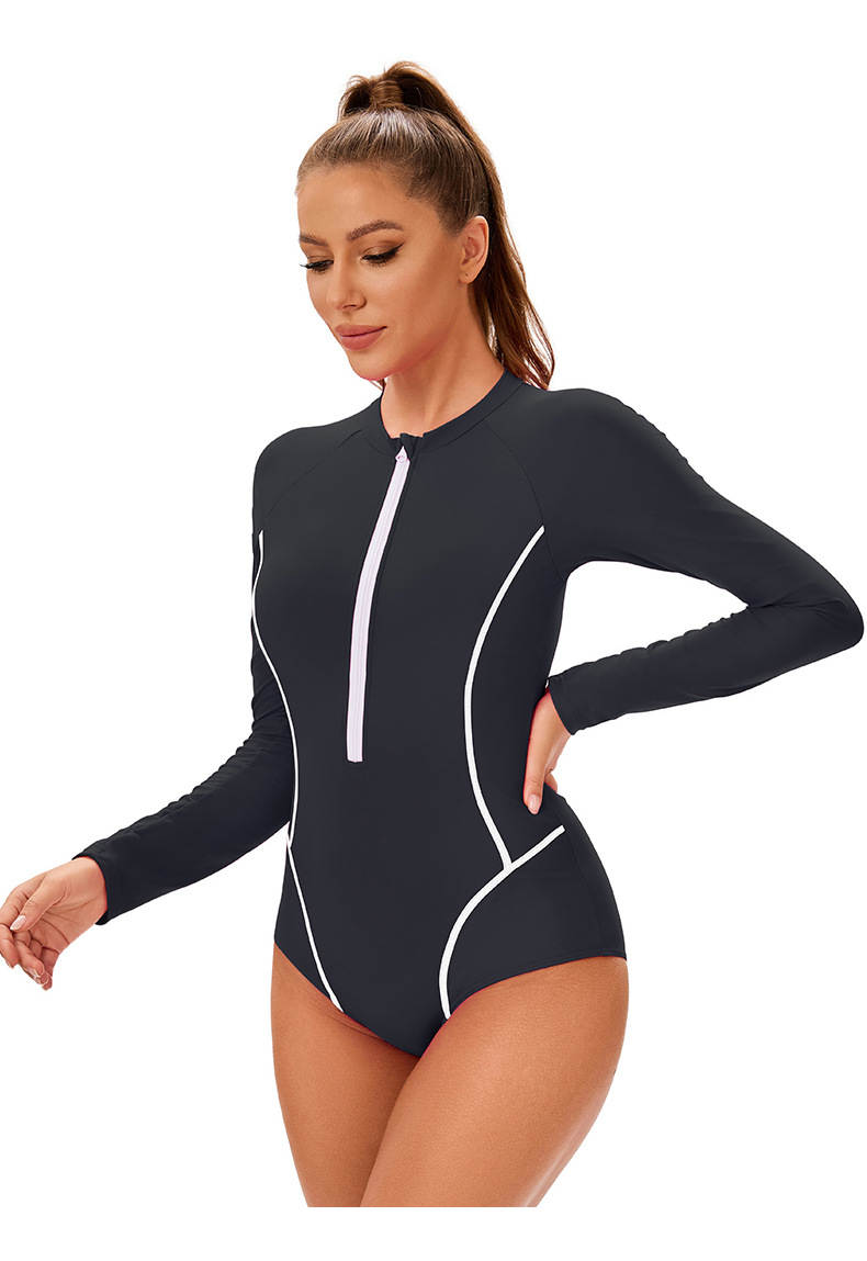 아마존 새로운 솔리드 컬러 트라이앵글 스포츠 수영복 여성 유럽과 미국의 대외 무역 라운드 넥 긴 소매 선스크린 보수 수영복